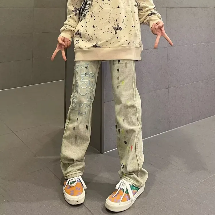 CVOOOER Желтые Грязные Унисекс Джинсы
