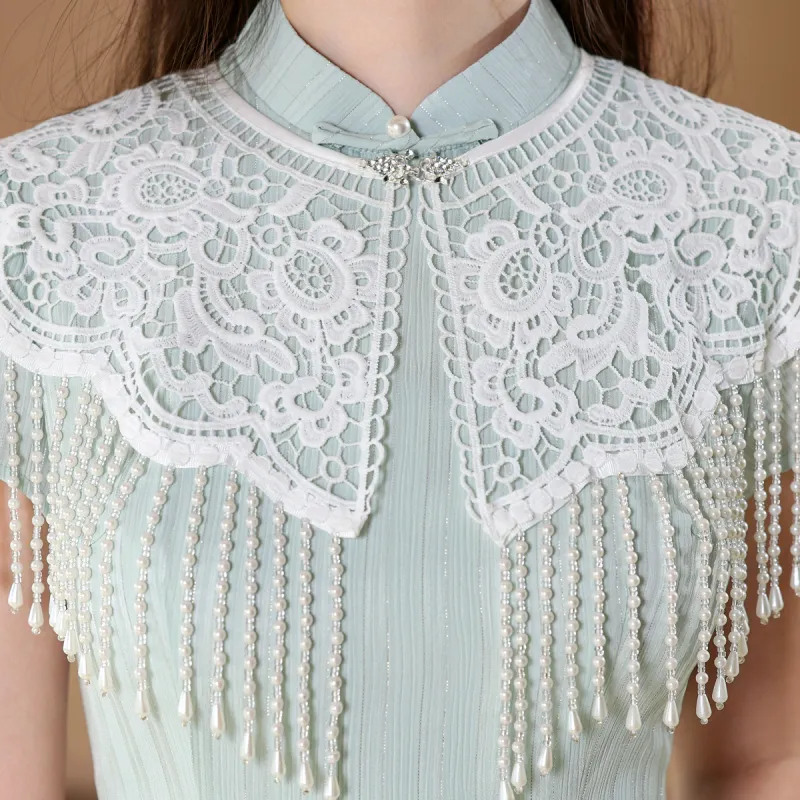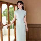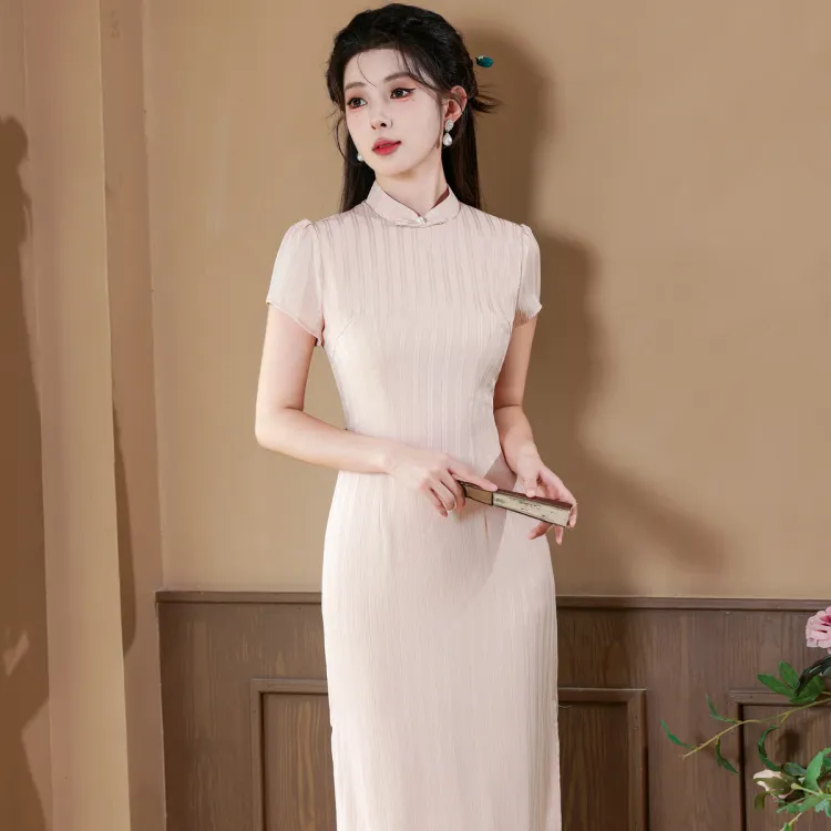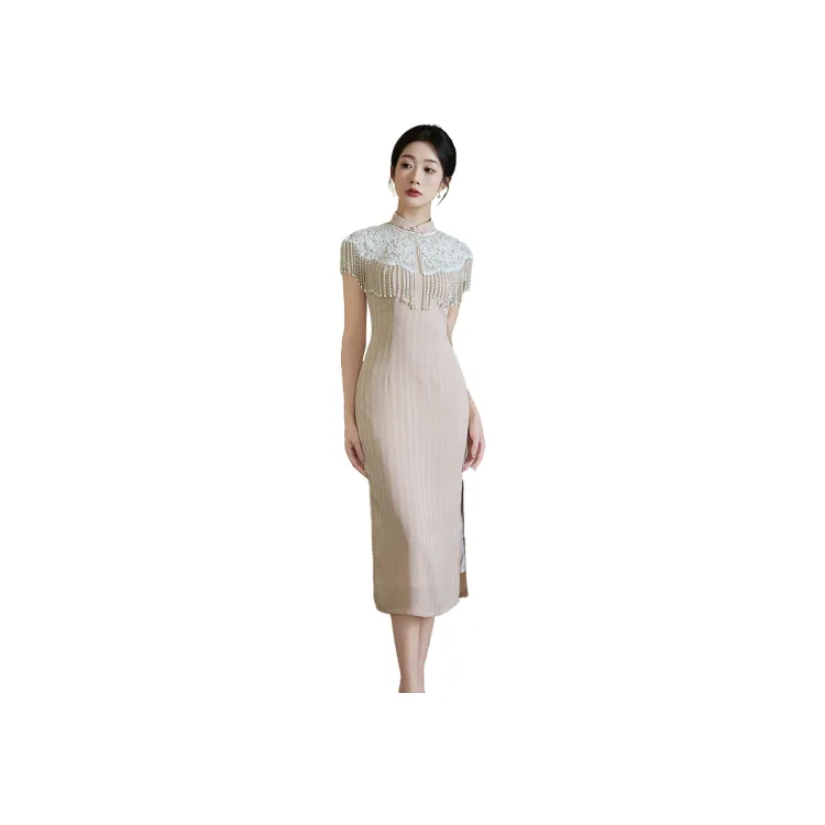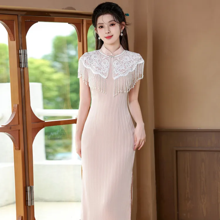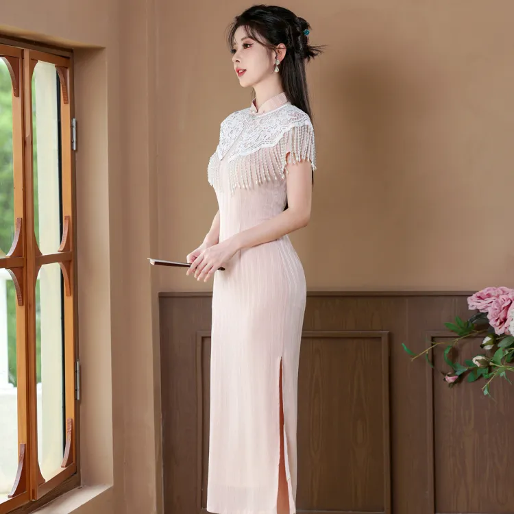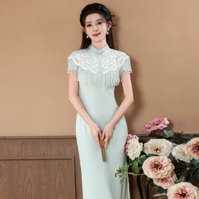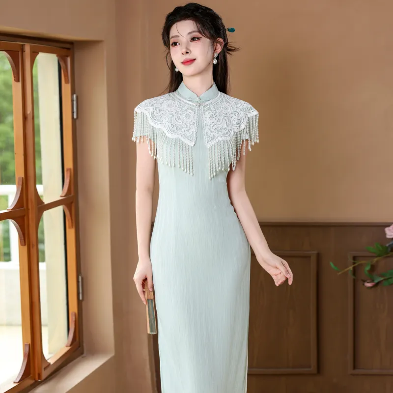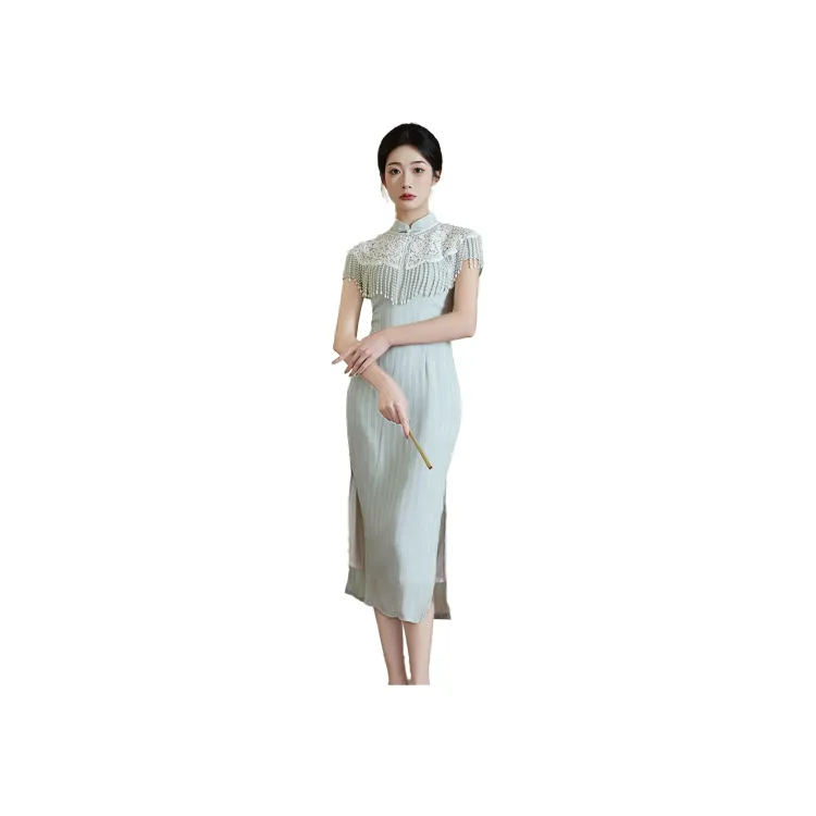 CXEGEGM Чонсам Новый китайский стиль Простой Элегантный Облегающий крой Девичий Платье с Шаль Женские