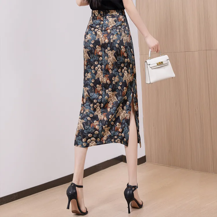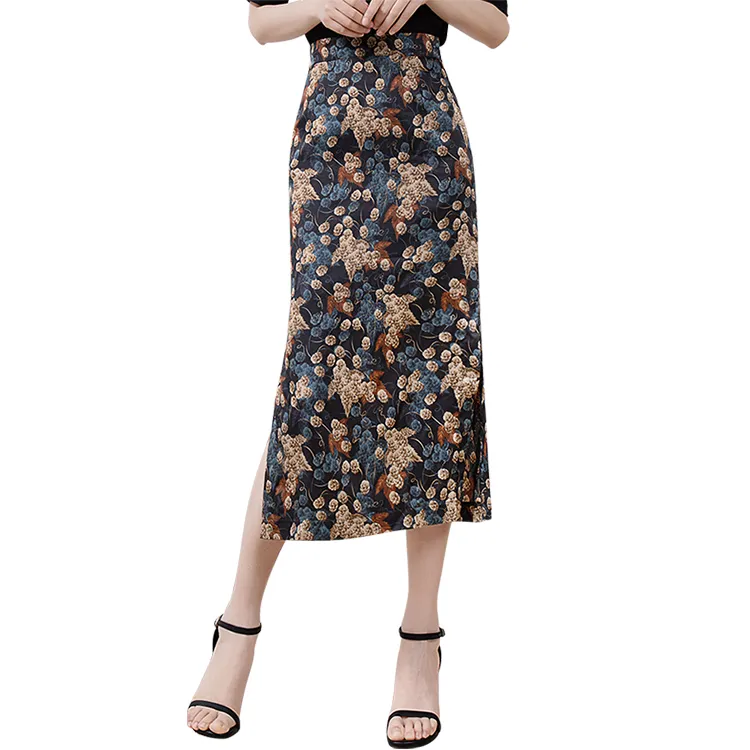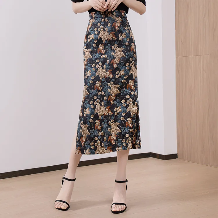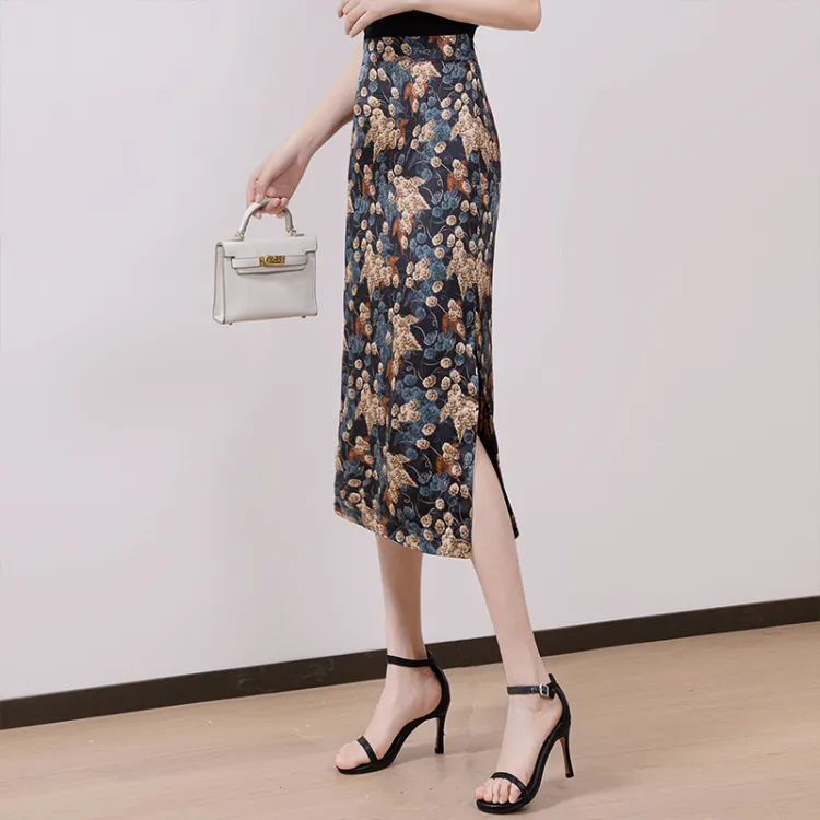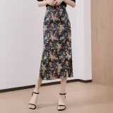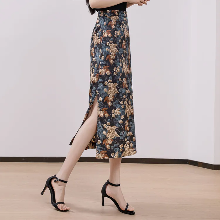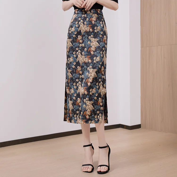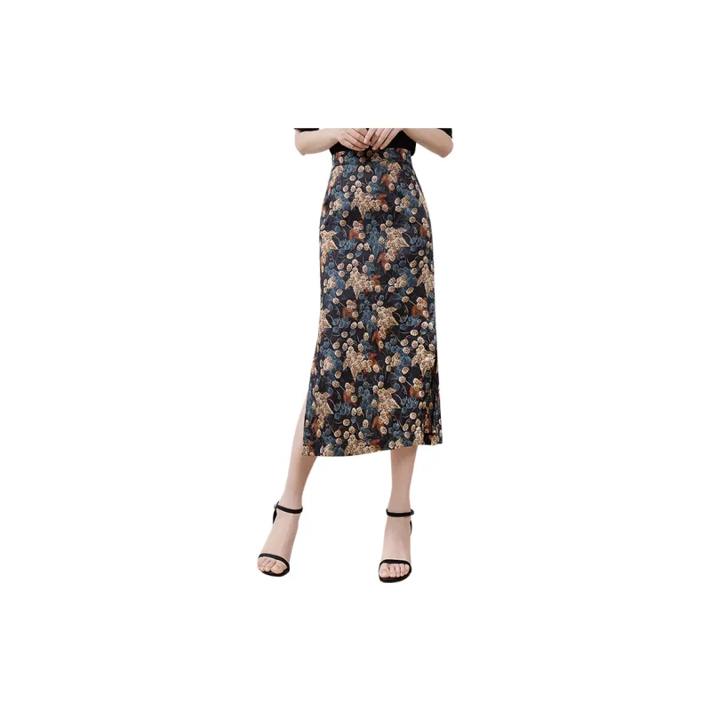 Cypress House Повседневный Длинный Юбка Женская Черная Подошва с Синим Цветком