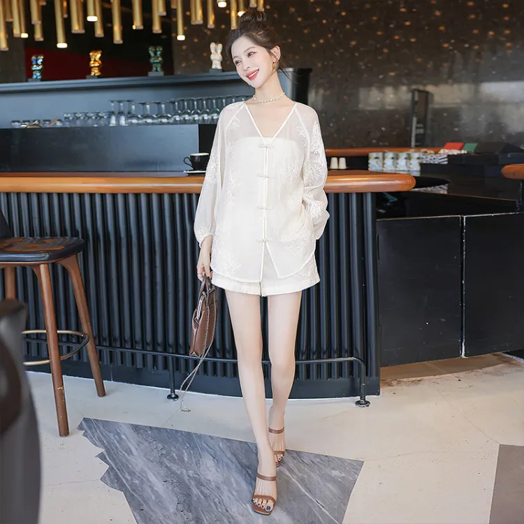 Топ/Ткань шорт Основная ткань: 100% полиэстер Вышивка нить: 100% вискоза Шорты Подкладка: 100% полиэстер
