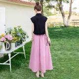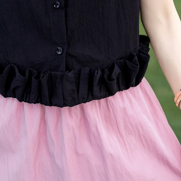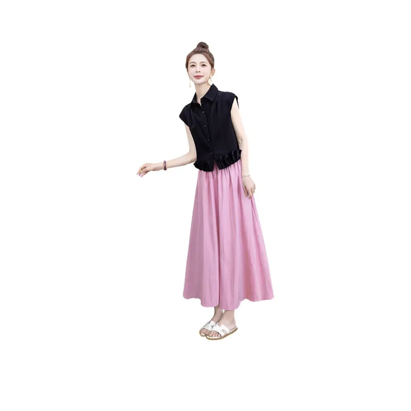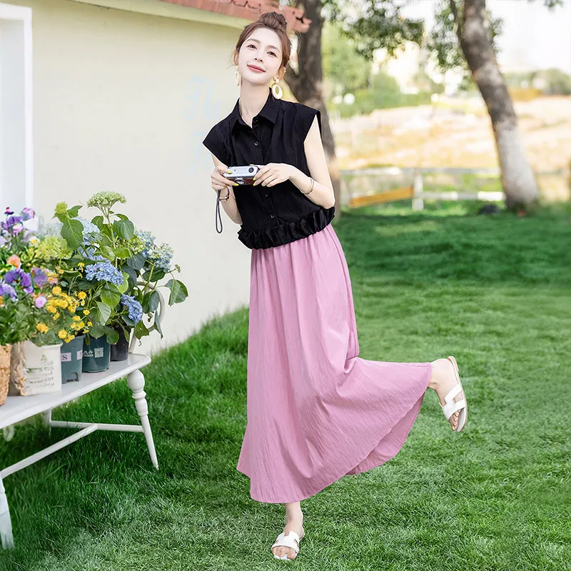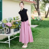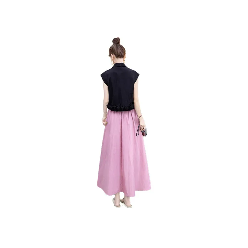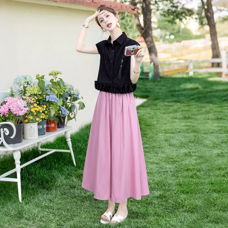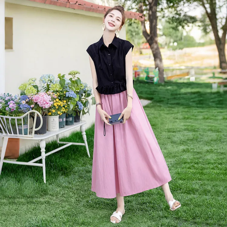 Чёрный топ и розовый низ