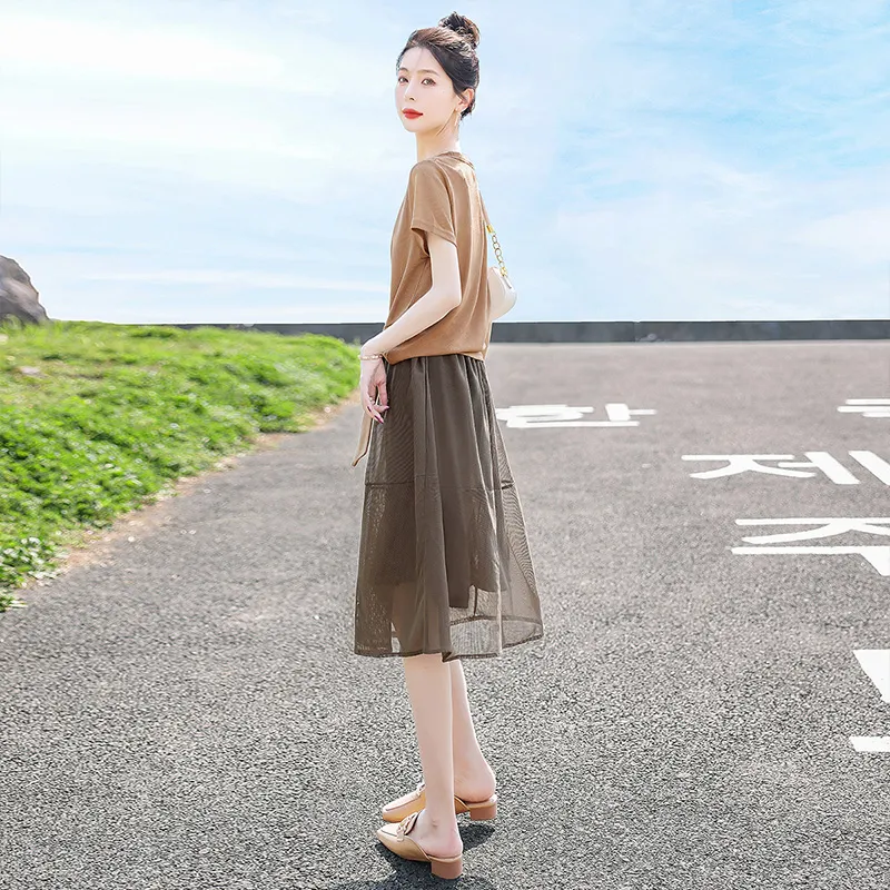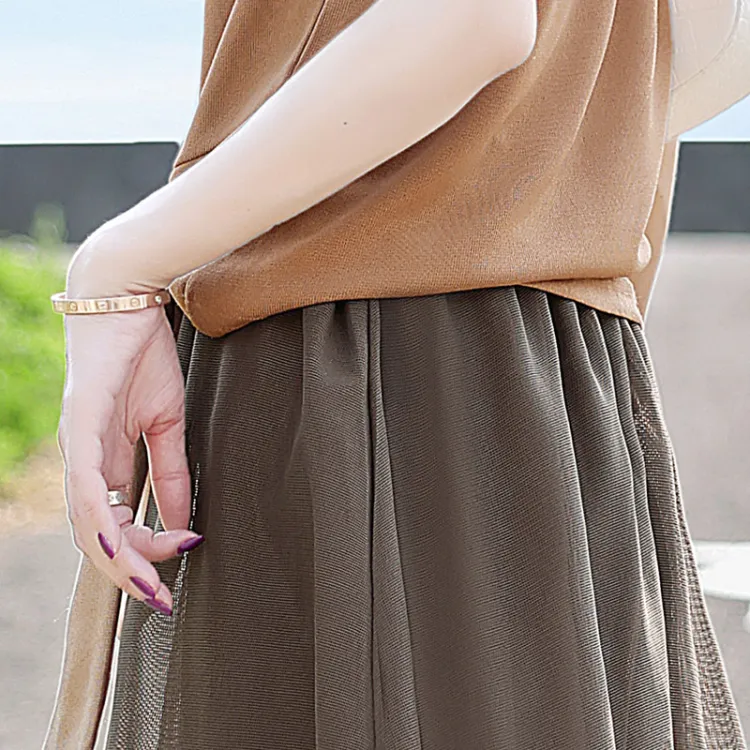 Cypress House Комплект с юбкой Женские Хаки Топ и Темно-Кофейный Низ