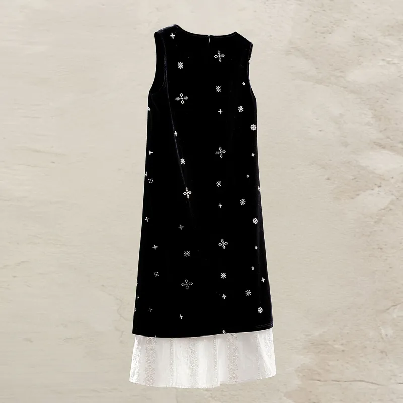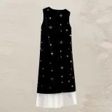Ткань - Основная ткань: 94% полиэстер, 6% эластан Ткань - Нить для вышивки: 100% полиэстер Ткань - Подол: 100% хлопок Подкладка: 100% полиэстер