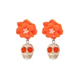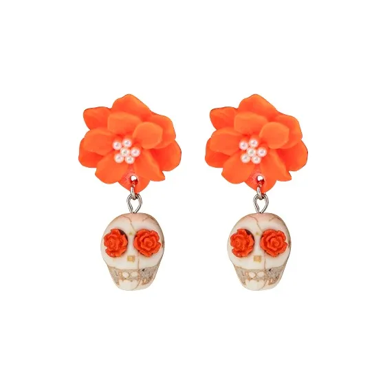 Серьги-кольца "Череп Цветочный" [Оранжевый]