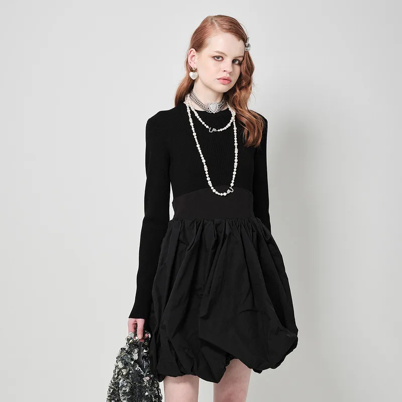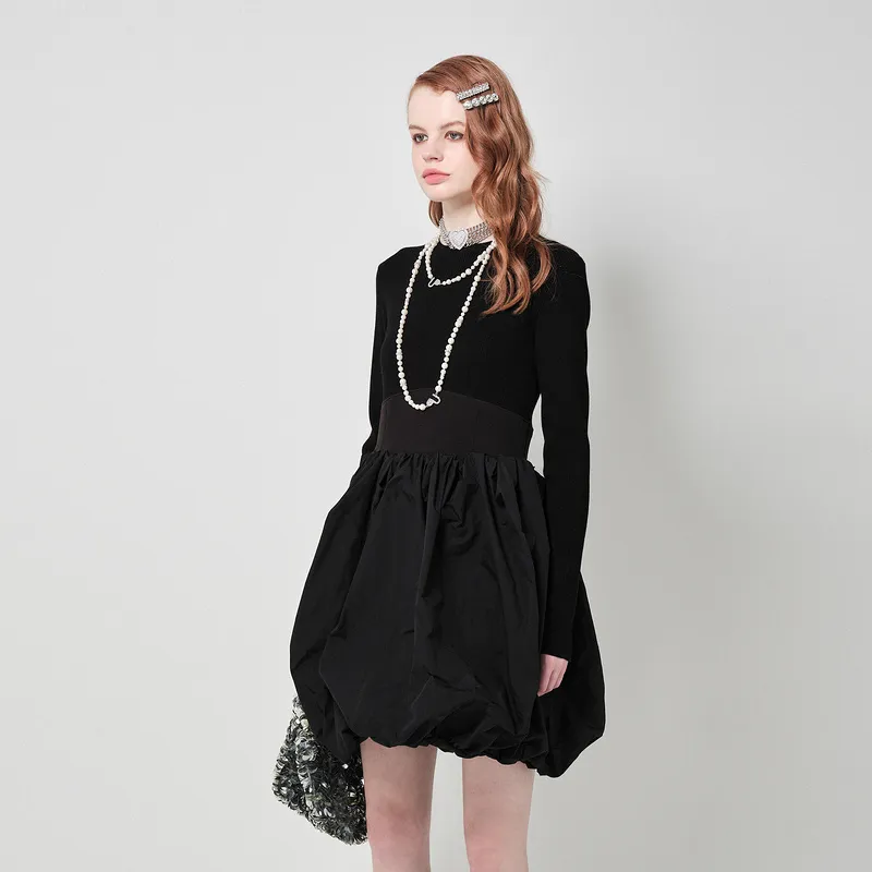 d'zzit Длинное платье с длинными рукавами женское черное