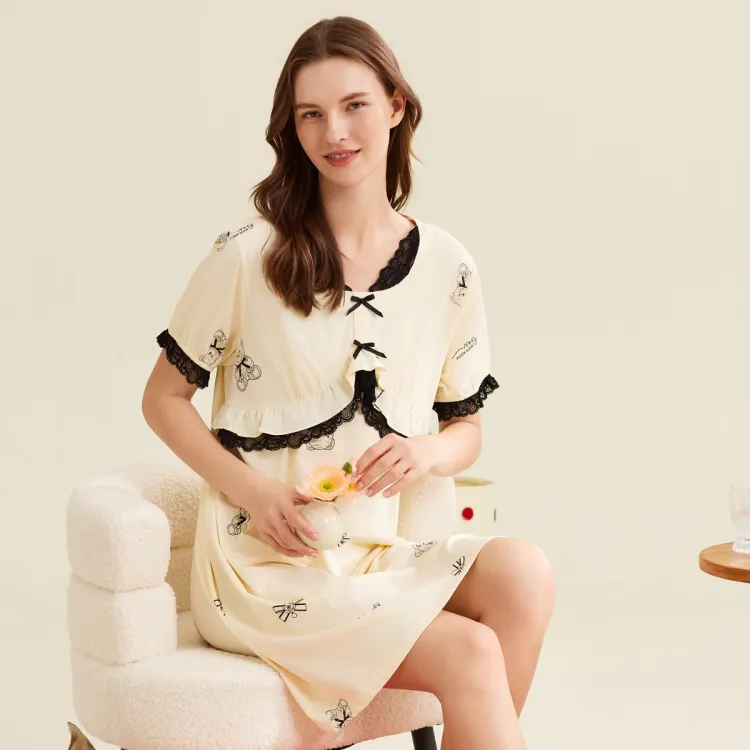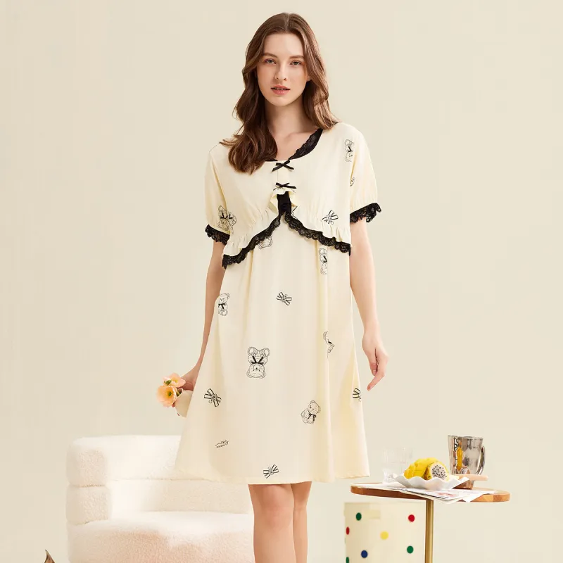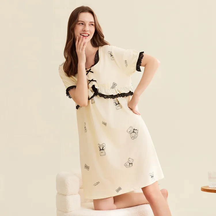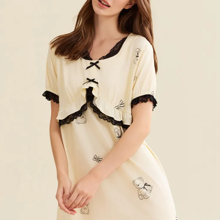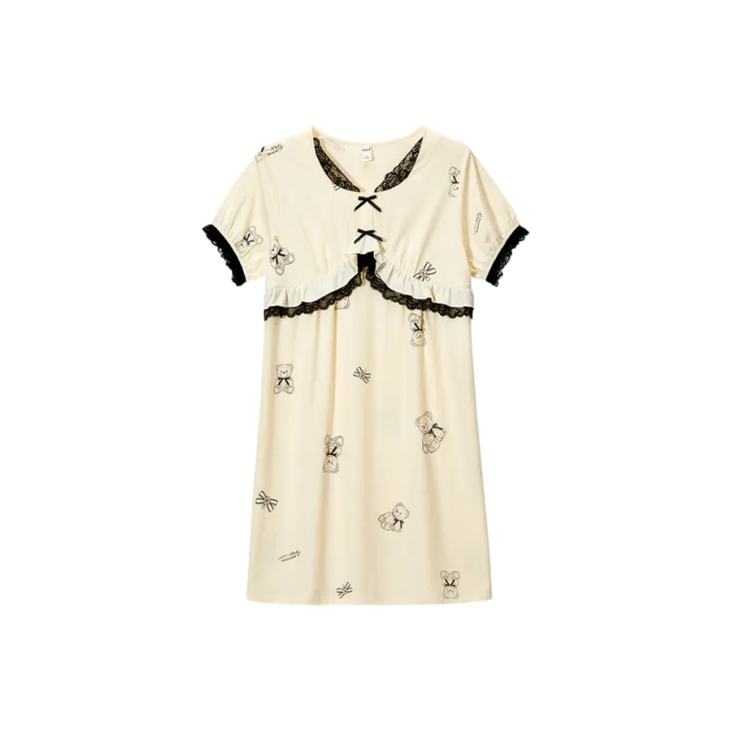 DAERLI Кружевная отделка Пасторальный стиль Платье Тонкое Женское Абрикосовое