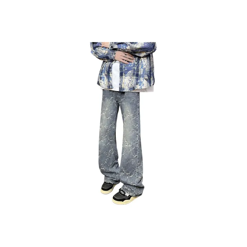 DAFK Светло-синие джинсы для мужчин с эластичным поясом