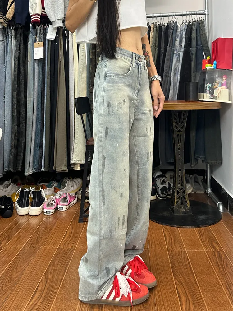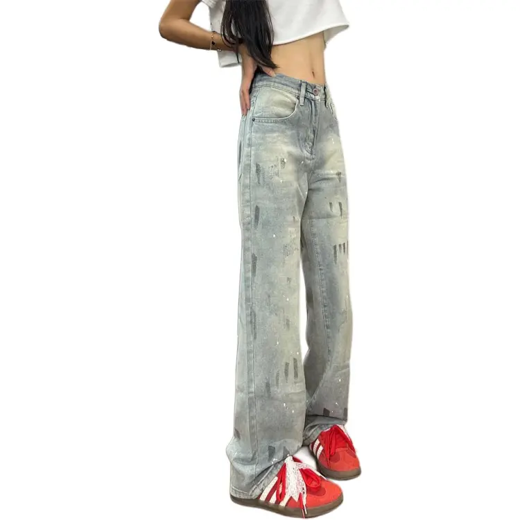 DAFK Синий Серый Полу-Эластичный Пояс Предложение Размер Маленький Женские Джинсы