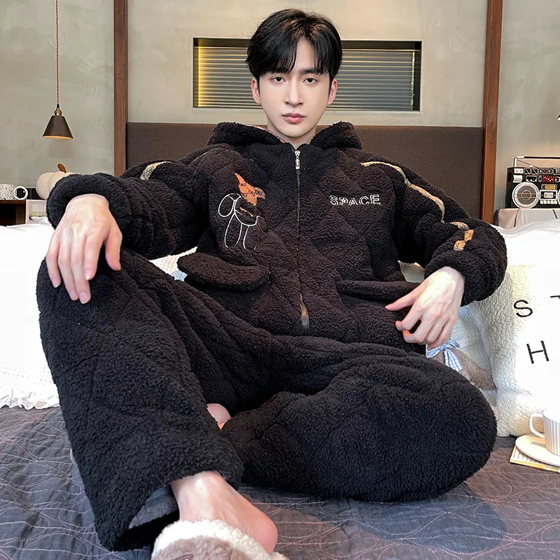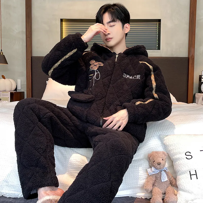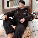 Daiyindie Осенние и зимние пижамы мужские утолщенные и с флисовой подкладкой термические коралловый флис наборы одежды