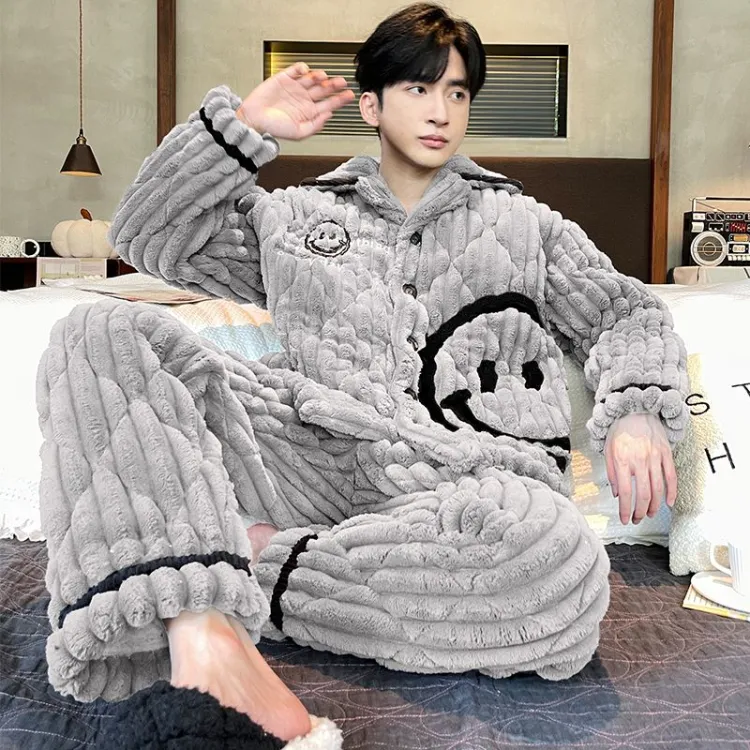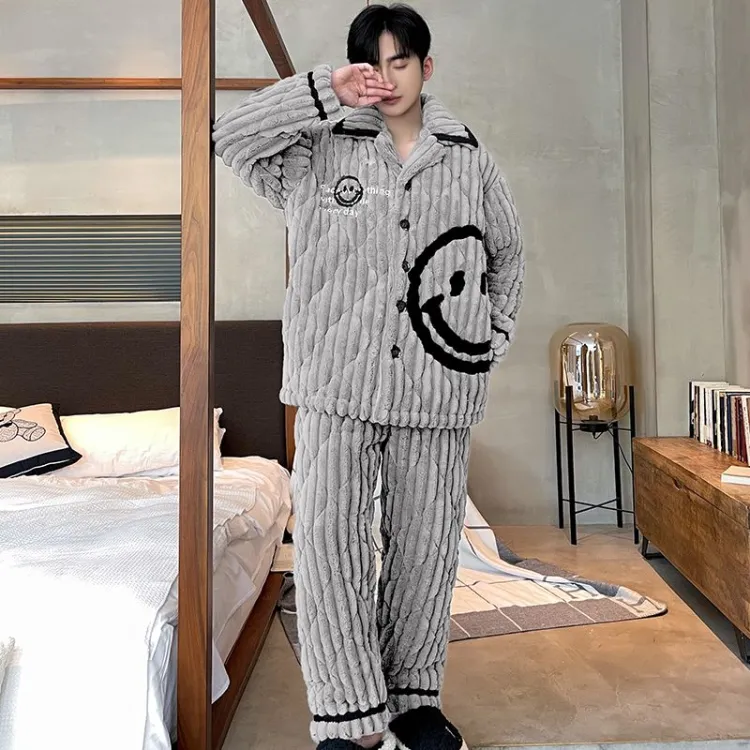 Daiyindie Осенние и зимние пижамы мужские утолщенные с флисовой подкладкой термические коралловый флис комплекты одежды
