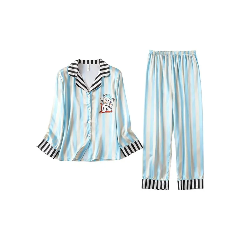 Daiyindie Осенне-зимняя пижама для женщин ледяной шелк с длинными рукавами домашняя одежда