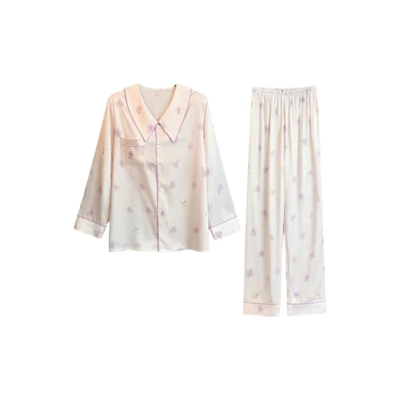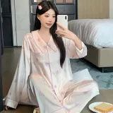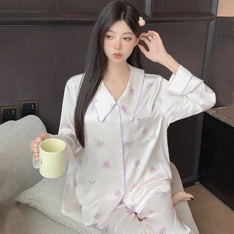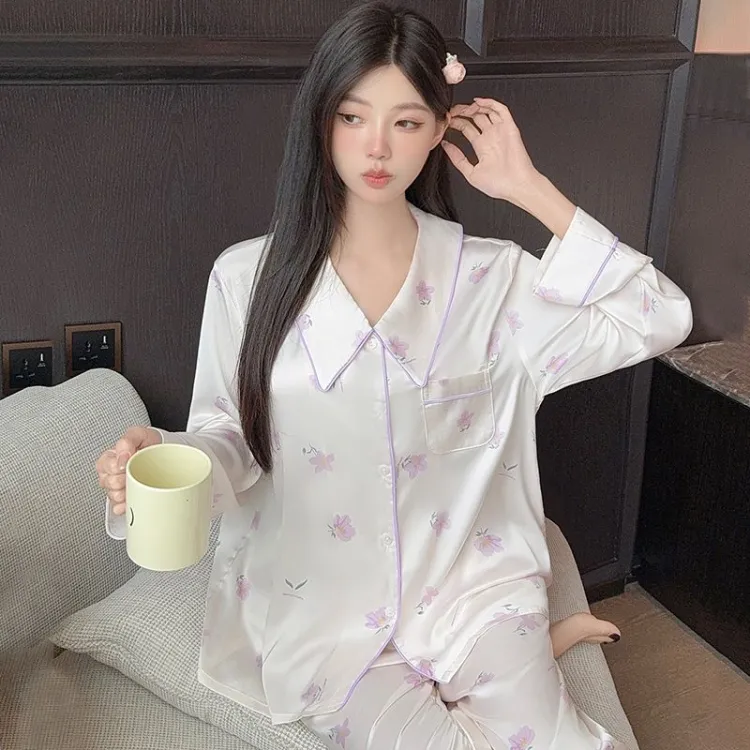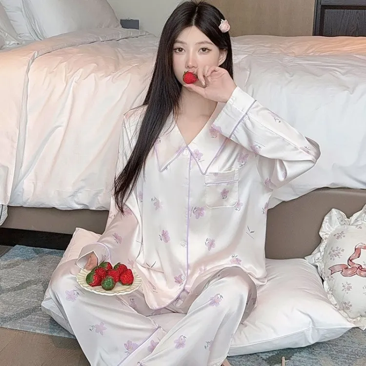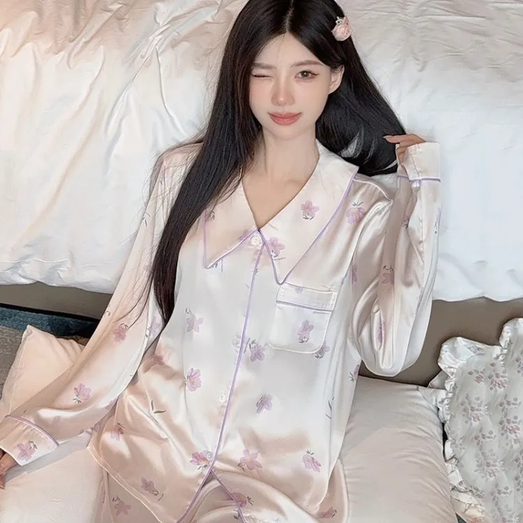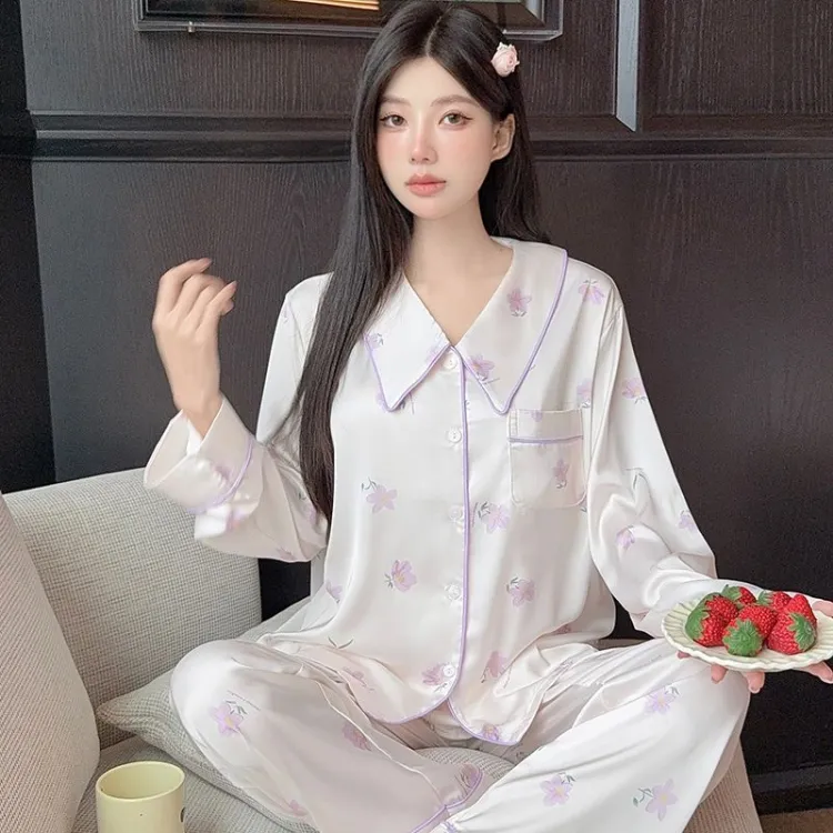 Daiyindie Осенне-зимняя пижама для женщин ледяной шелк с длинными рукавами домашняя одежда