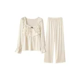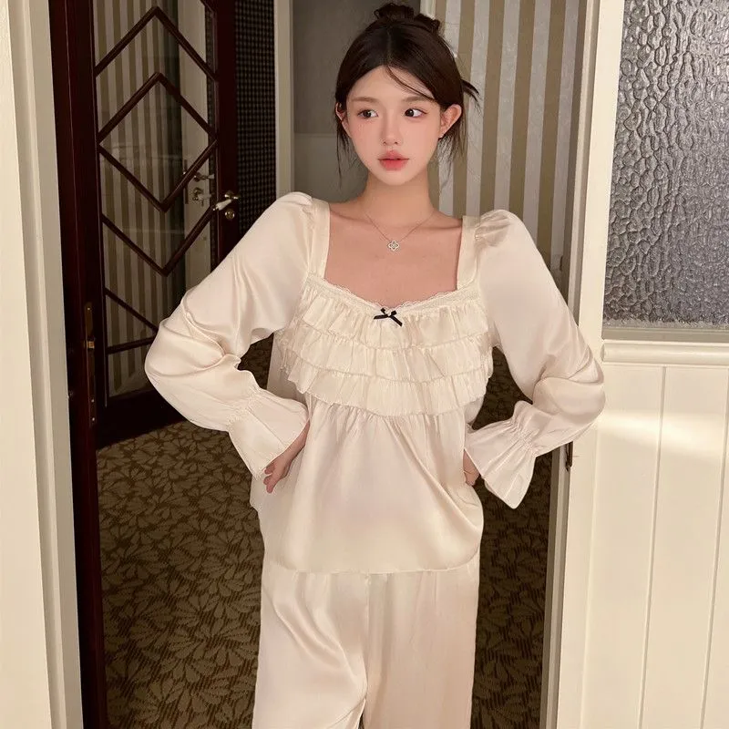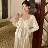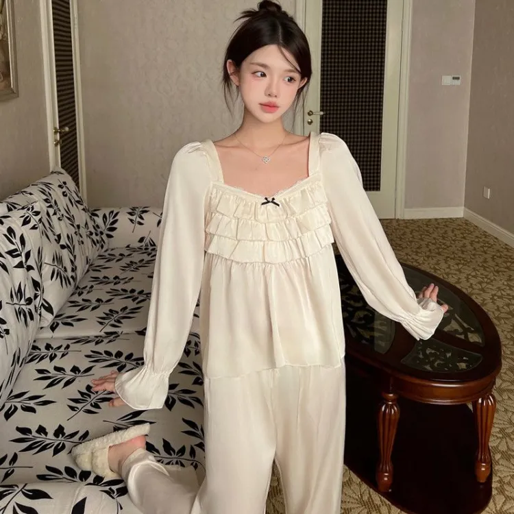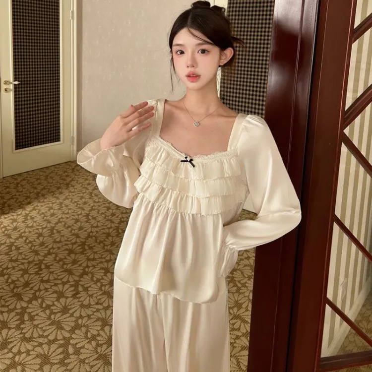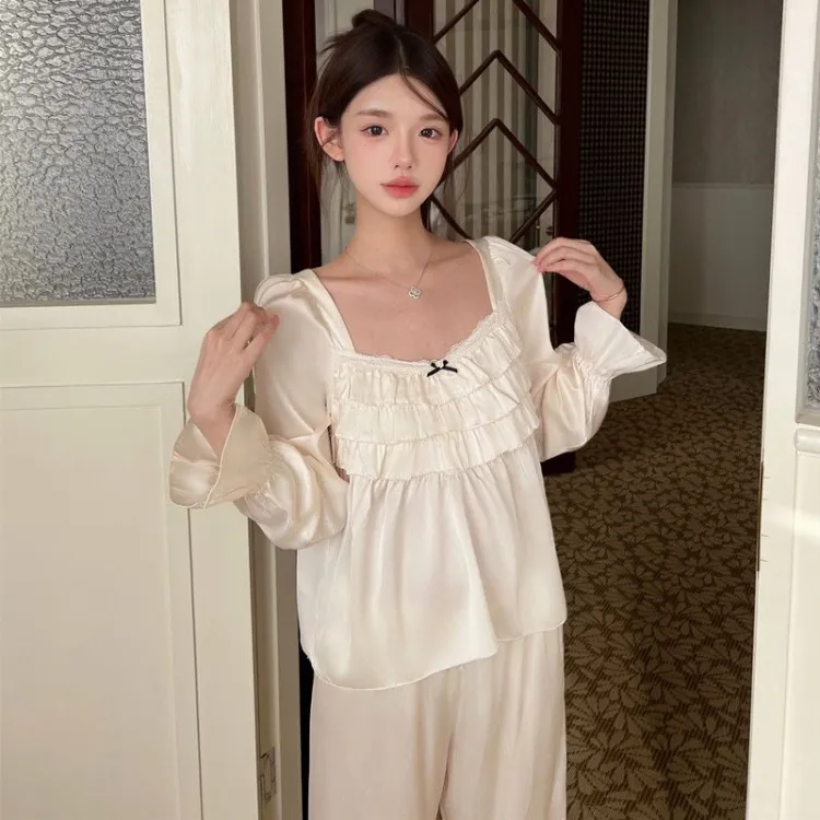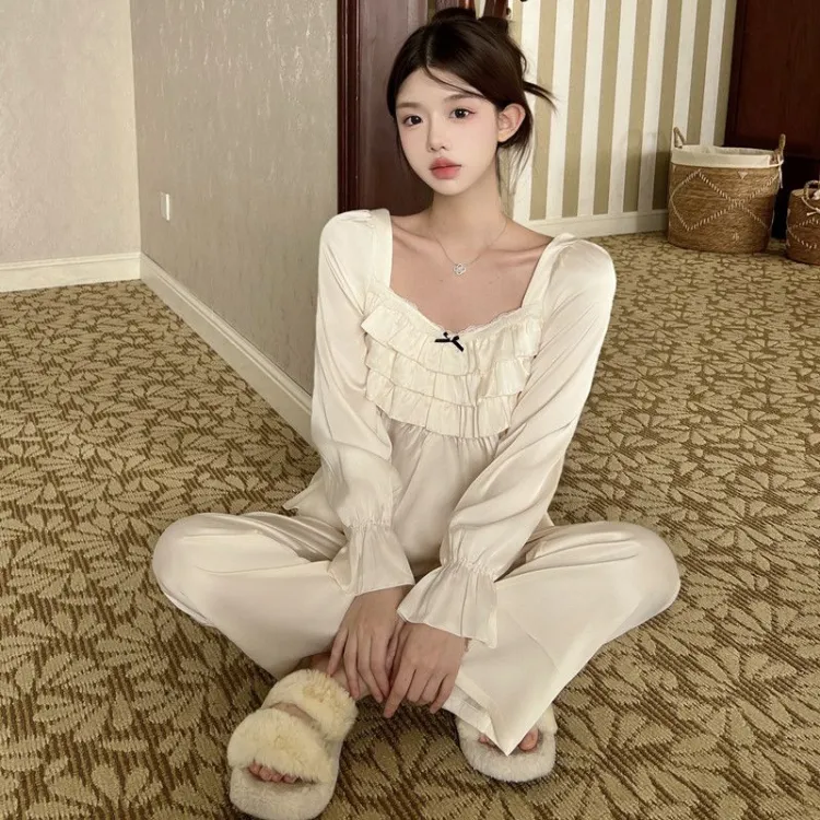 Daiyindie Осенние и зимние пижамы для женщин ледяной шелк с длинными рукавами домашние комплекты