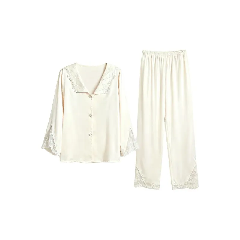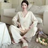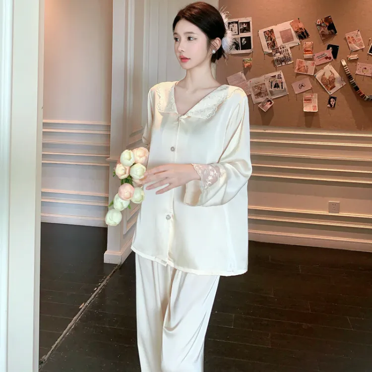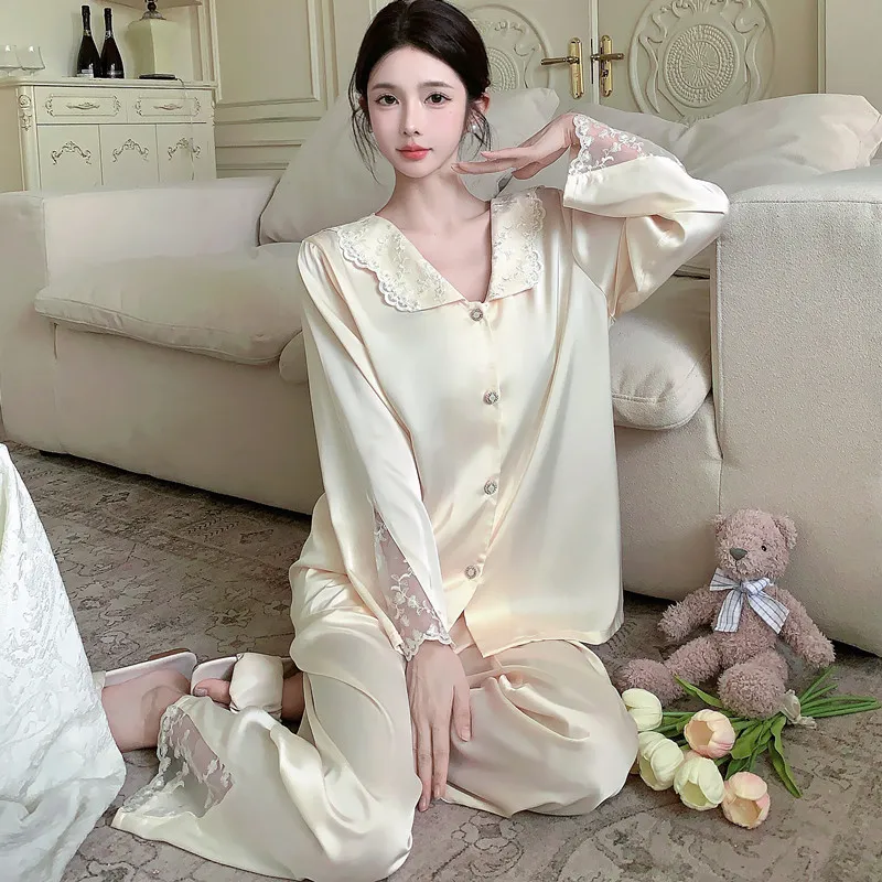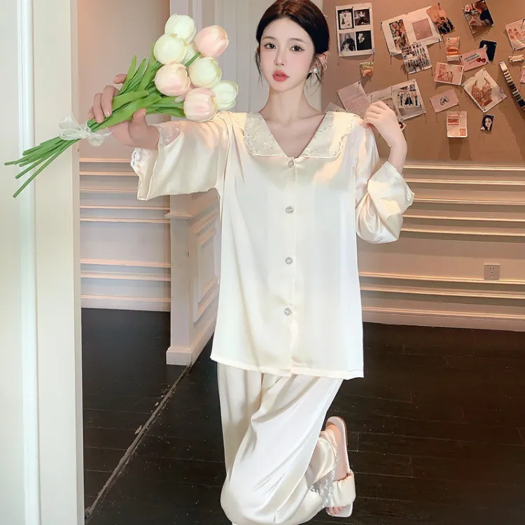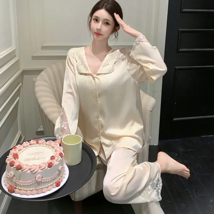 Daiyindie Осенние и зимние пижамы для женщин ледяной шелк с длинными рукавами домашние комплекты