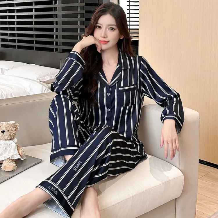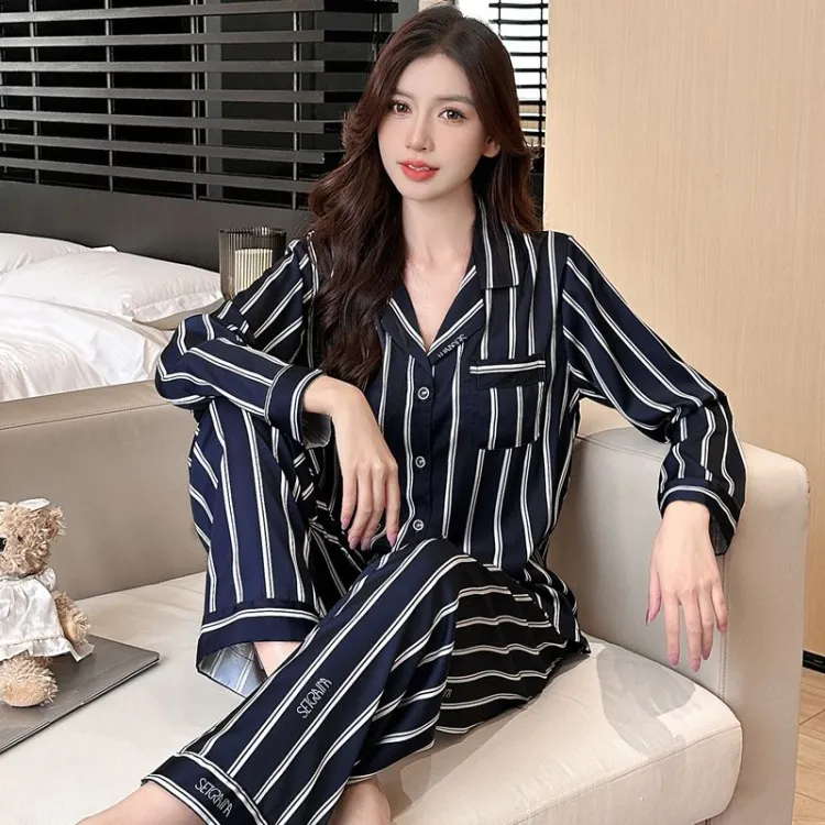 Daiyindie Осенние и зимние пижамы женские ледяной шелк с длинными рукавами штаны