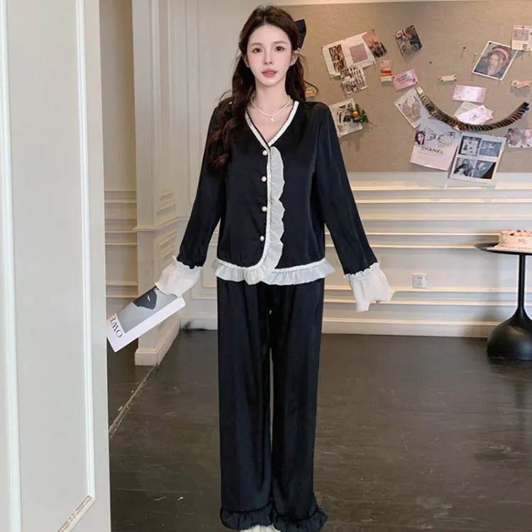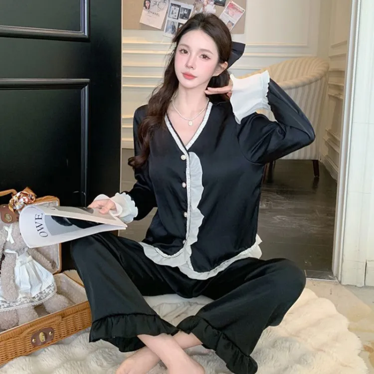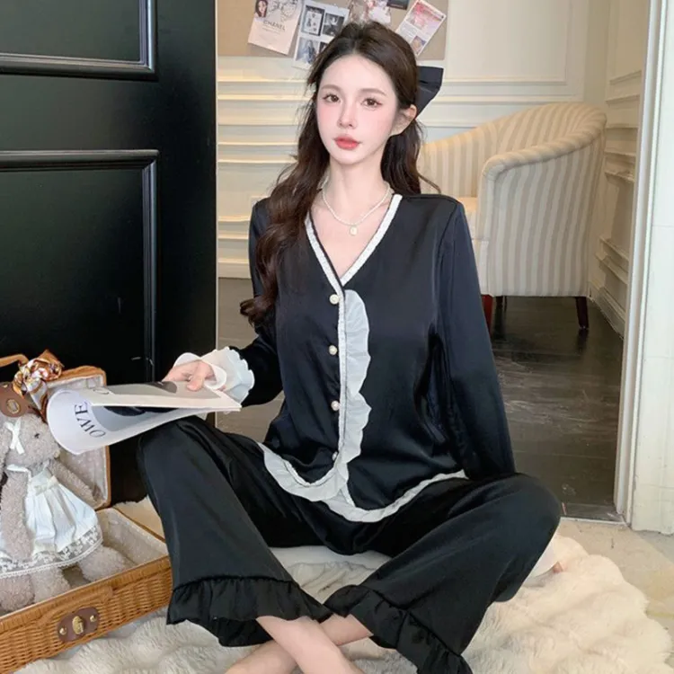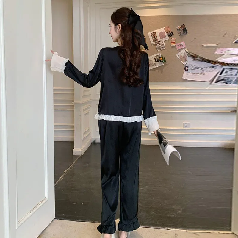 Daiyindie Осенние и зимние пижамы женские ледяной шелк с длинными рукавами штаны