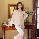 Daiyindie Осенне-зимняя пижама для женщин ледяной шелк длинные рукава