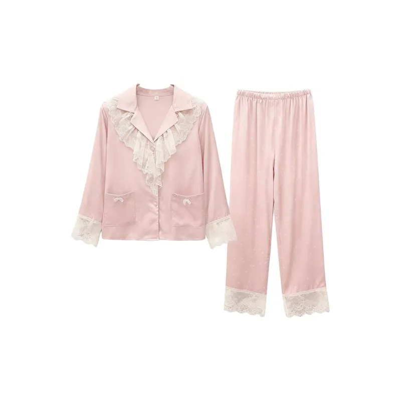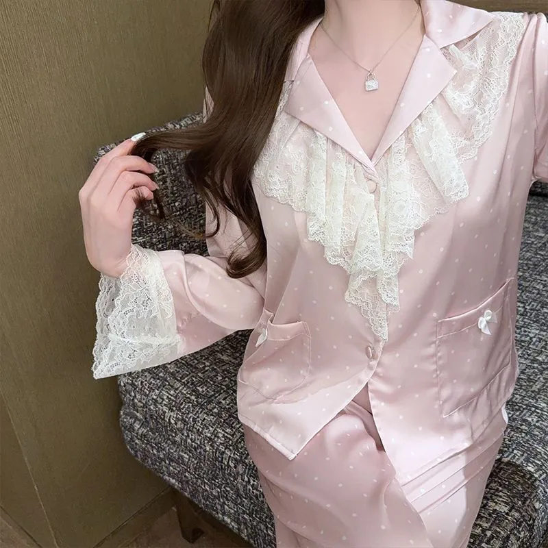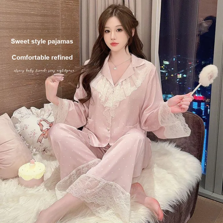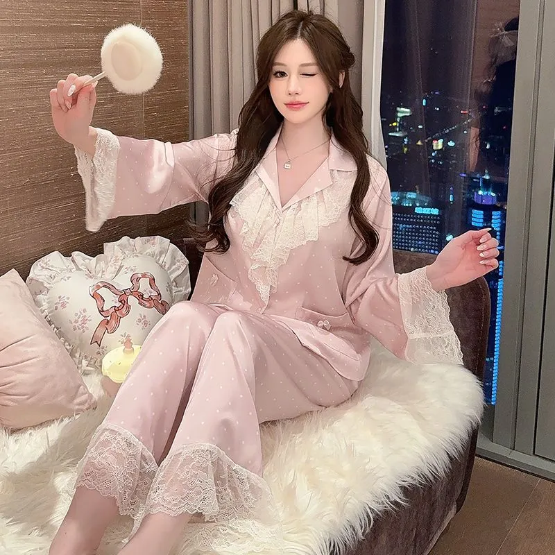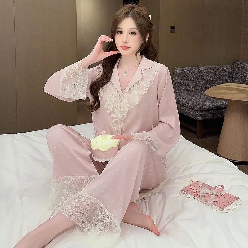 Daiyindie Осенние и зимние пижамы женские с длинными рукавами и кружевной отделкой