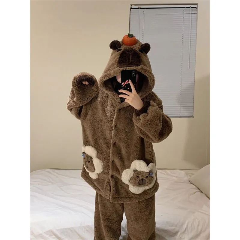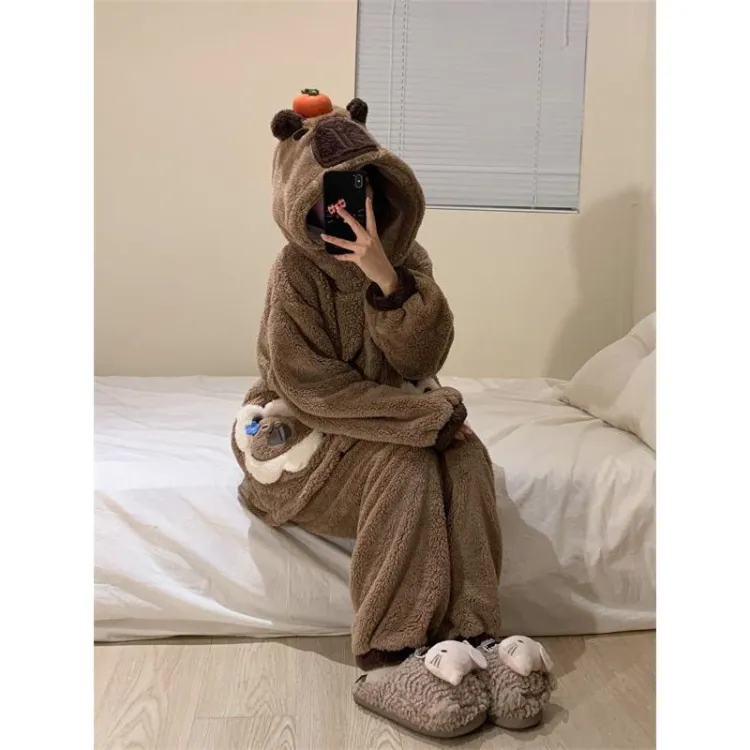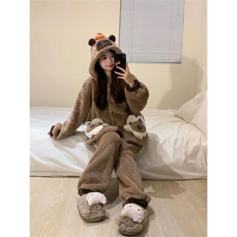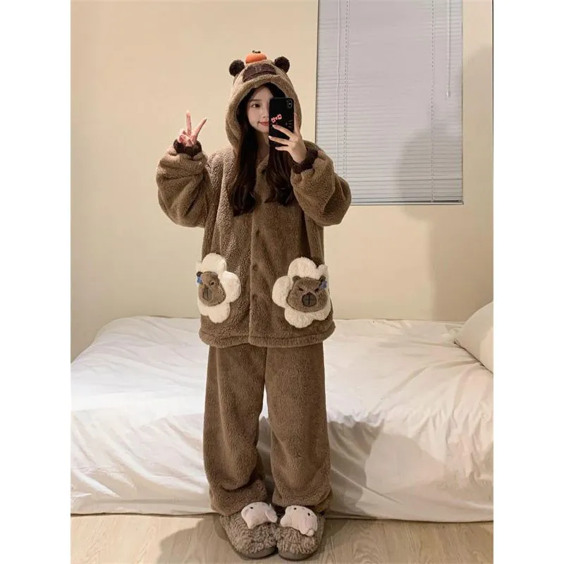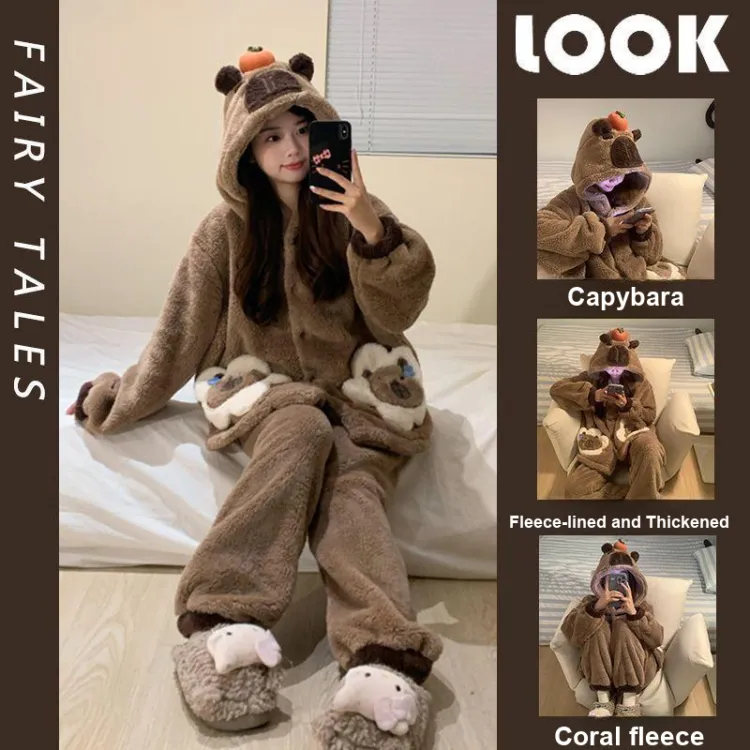 Daiyindie Осенние и зимние пижамы для женщин утолщенные с флисовой подкладкой термические коралловый флис наборы одежды