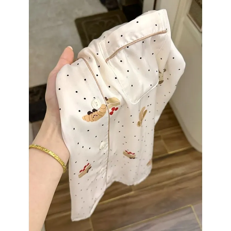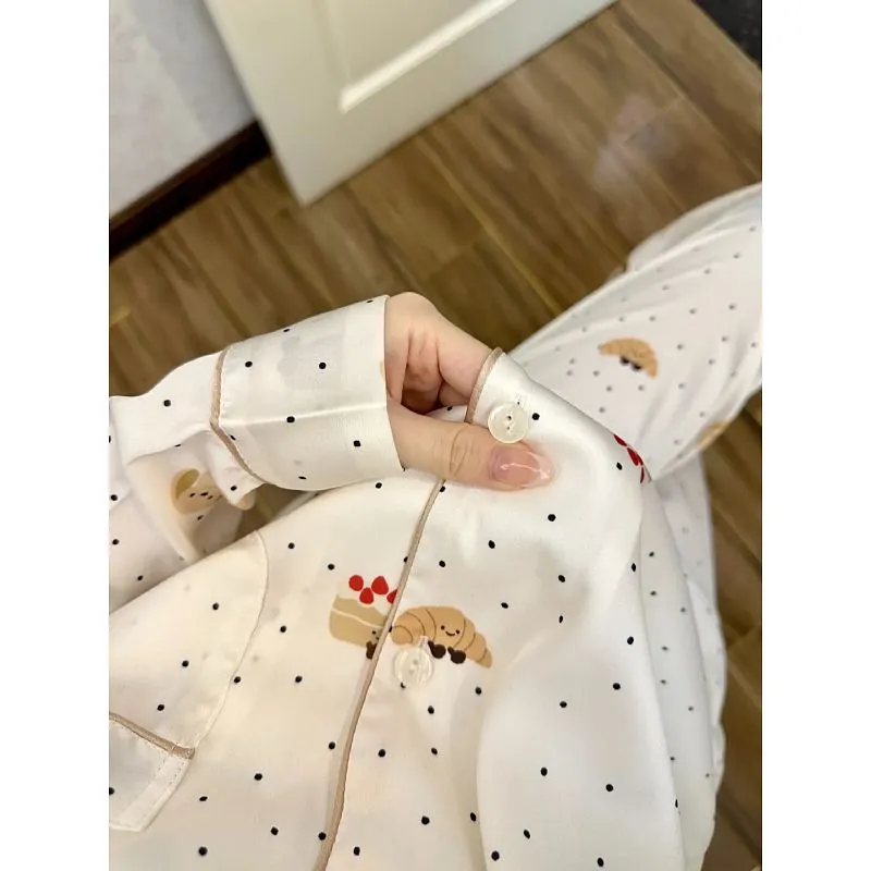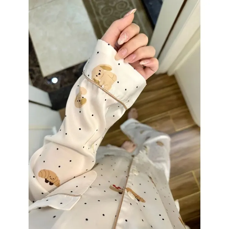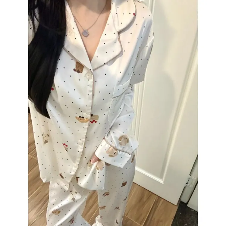 Daiyindie Весна And Осенний Пижама Ледяной шелк Длинный рукав Женские