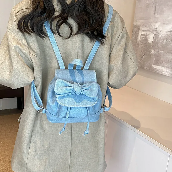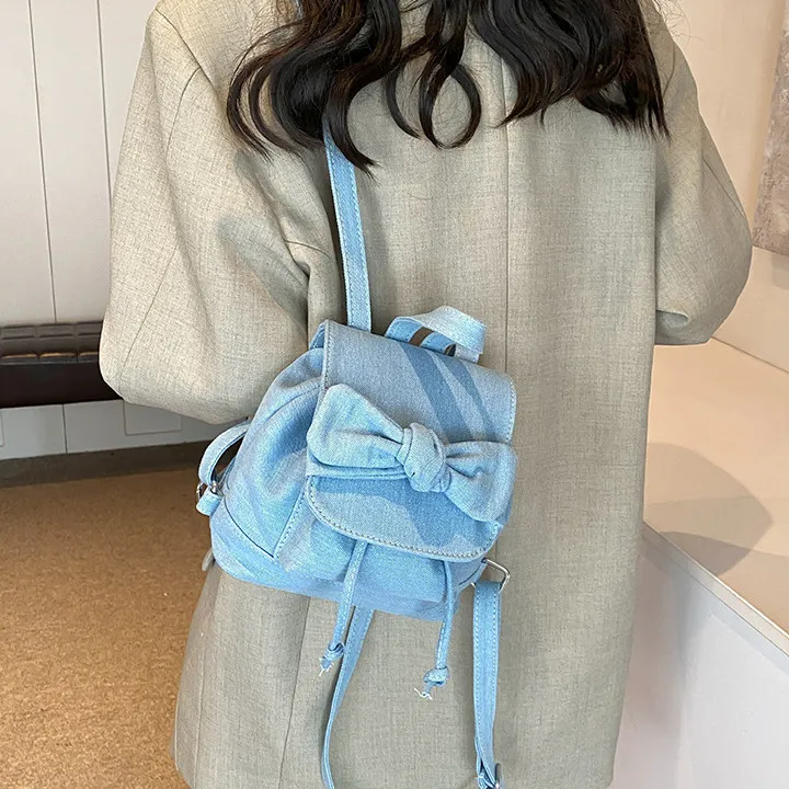 DALO ПУ (полиуретан) Панель из денима Рюкзак Сумка Рюкзак Женская Белая Серебряная Синяя