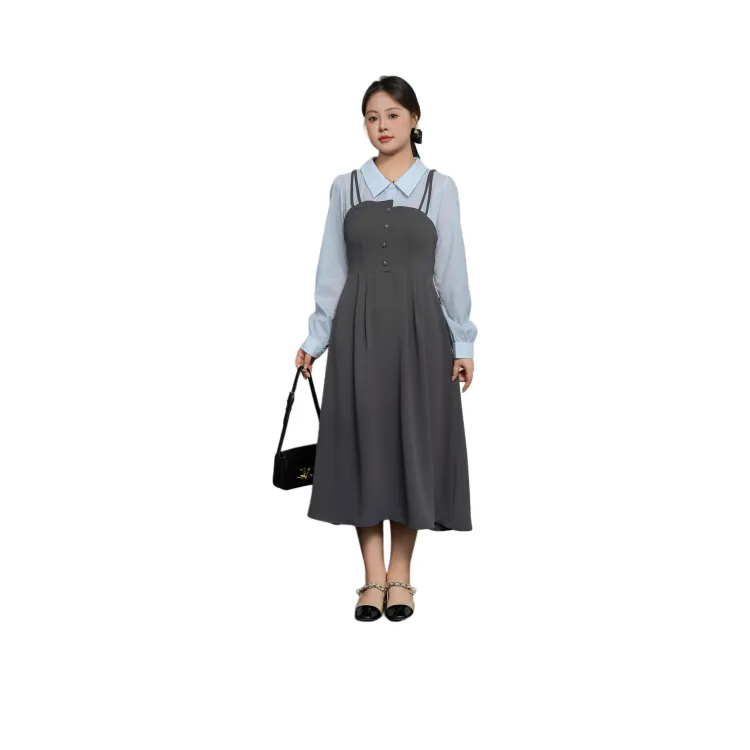 DAMABAIFENBAI Длинное платье с длинными рукавами женское серо-синий