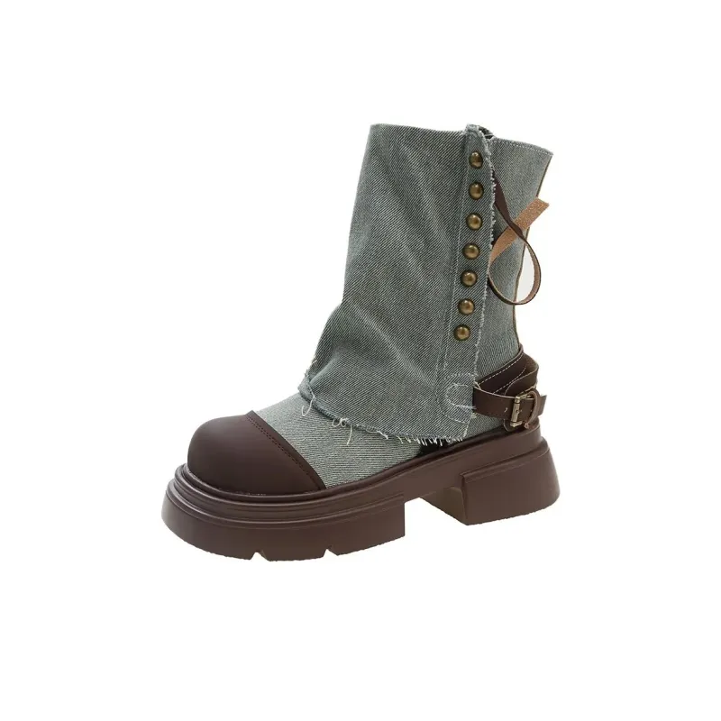 DANGLIANG Британский стиль ориентированный на дизайн нишевый Vintage Fashion универсальный повседневные ботильоны 6 см