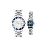 Ледниковый Синий Женские Часы + Серебряный Белый Мужские Часы