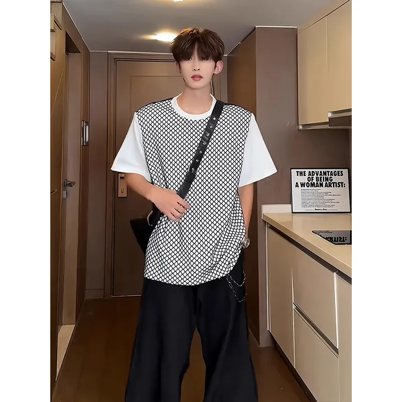 DANJUE Dude CHIC Премиум Feel Американский Пэчворк Тяжелый Половина рукава Унисекс