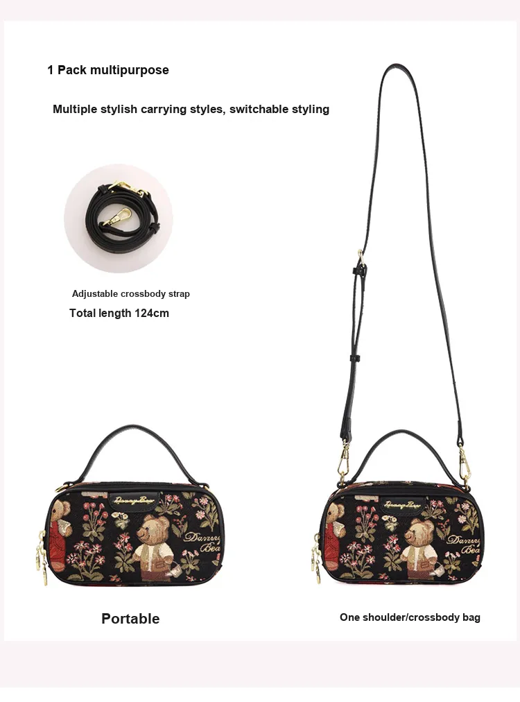 DANNYBEARJEANS Ткань через плечо Сумка для фотоаппаратов Унисекс Медведь Черный Медведь Белый