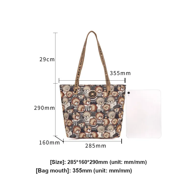 DANNYBEARJEANS Ткань Tote Сумка Плечевая Сумка Стандартная Унисекс Винтаж Медведь Черный