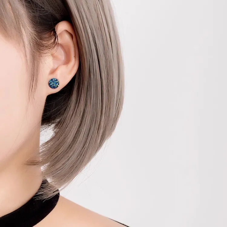 Кристальный кластер серьги-гвоздики, синий, 1 пара, 10 мм