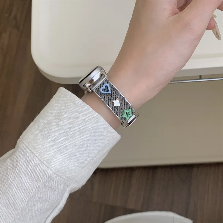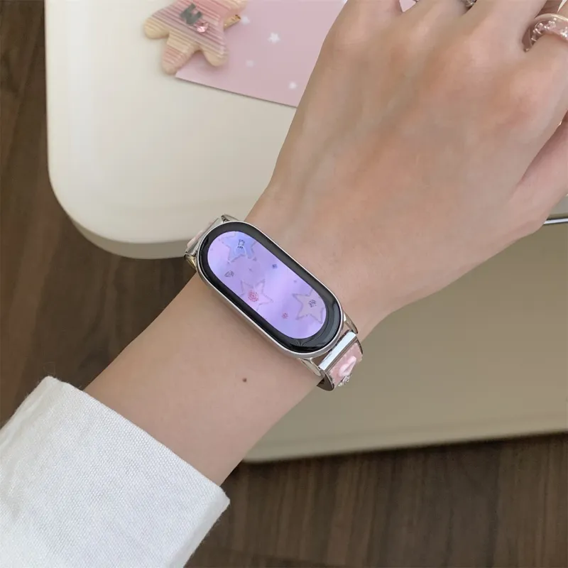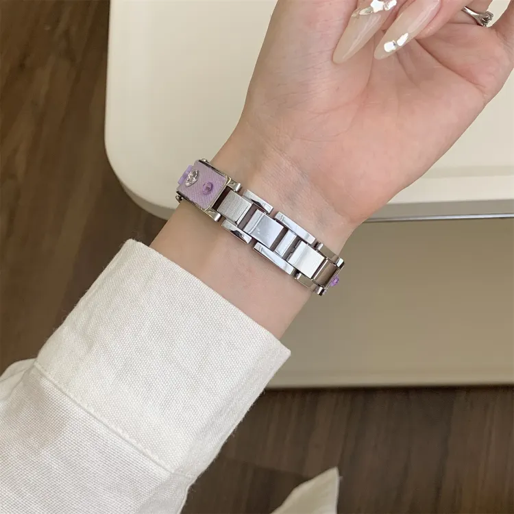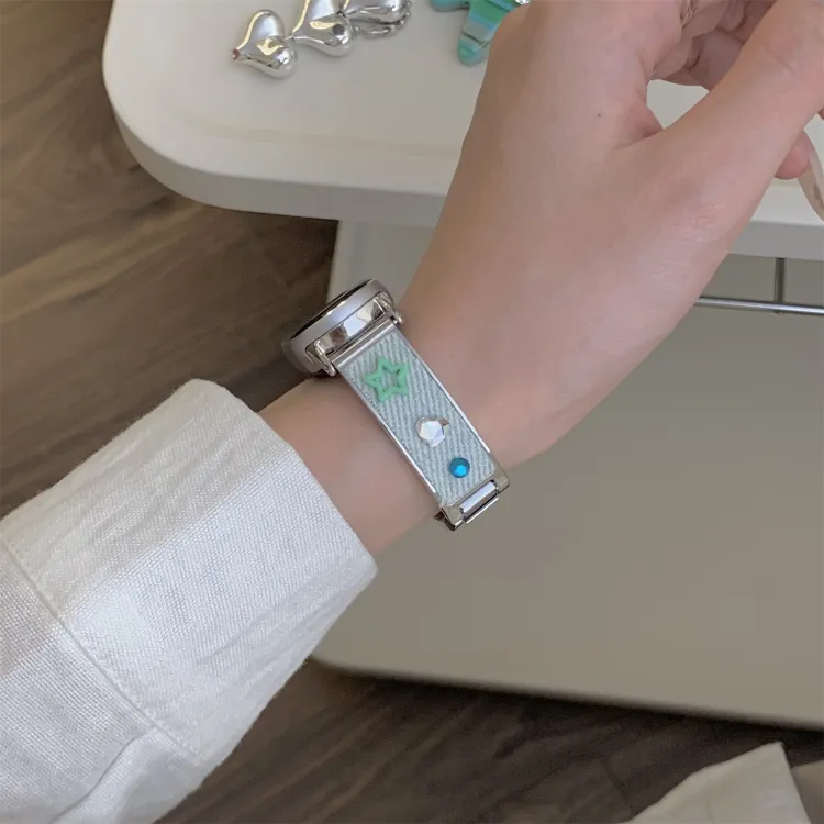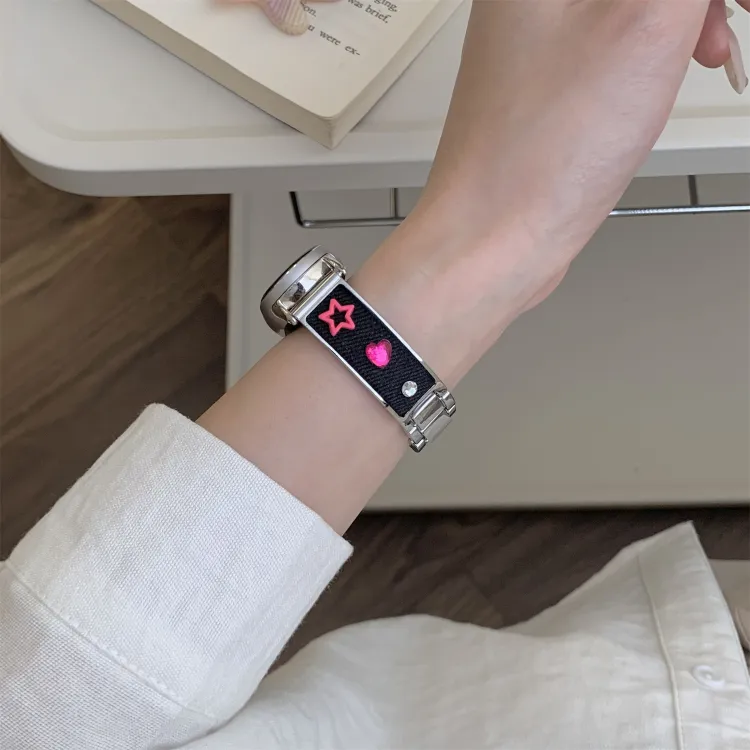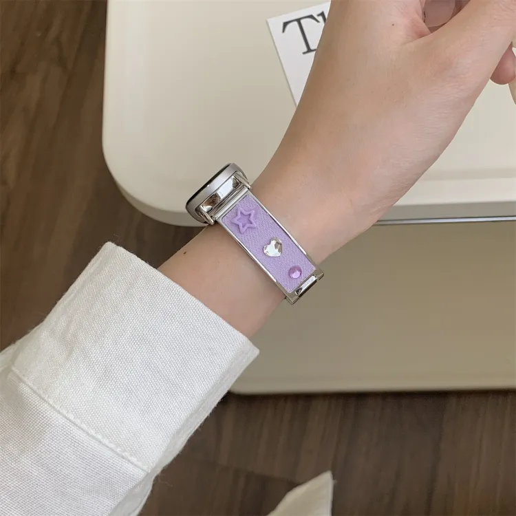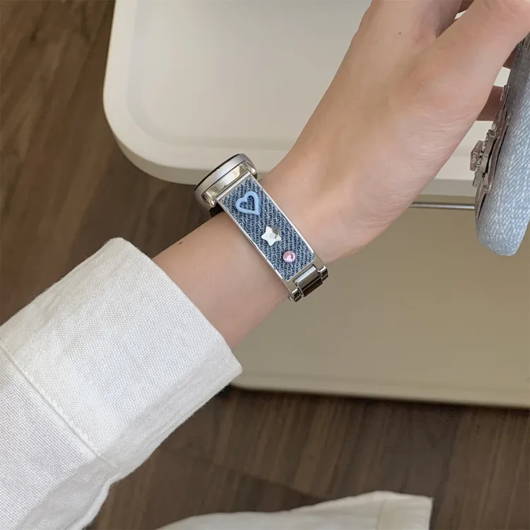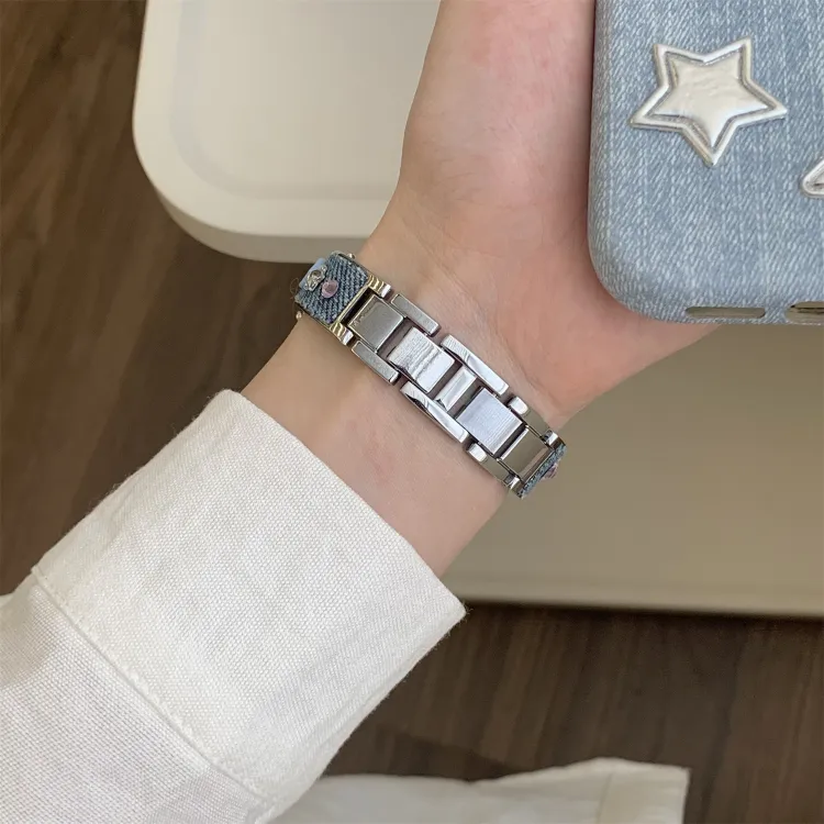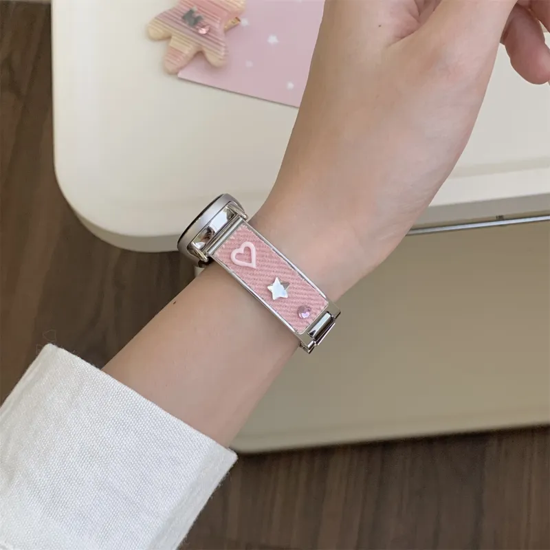 Ремешок Цвет:Розовый/Дофаминовая одежда Цветной страз Деним Металл Браслет