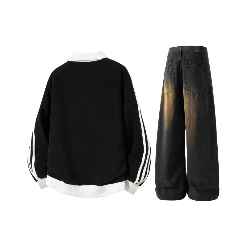 Свитшот: 51% хлопок, 49% полиэстер Джинсы: 46,5% хлопок, 27,9% полиэстер, 25,6% регенерированное целлюлозное волокно