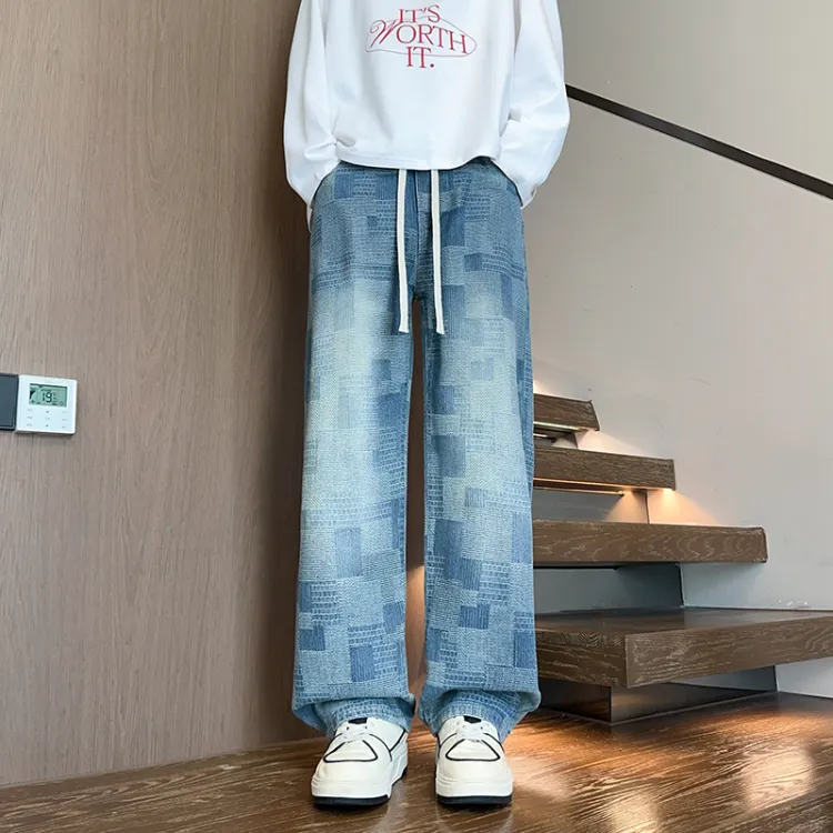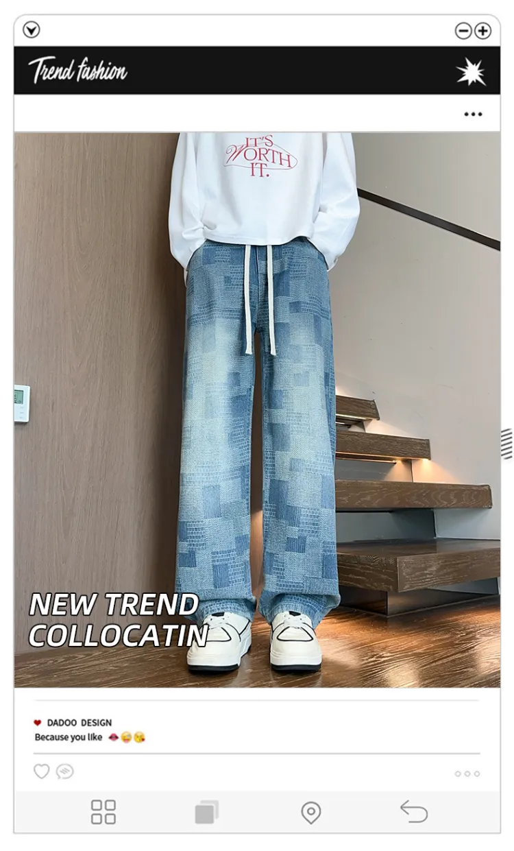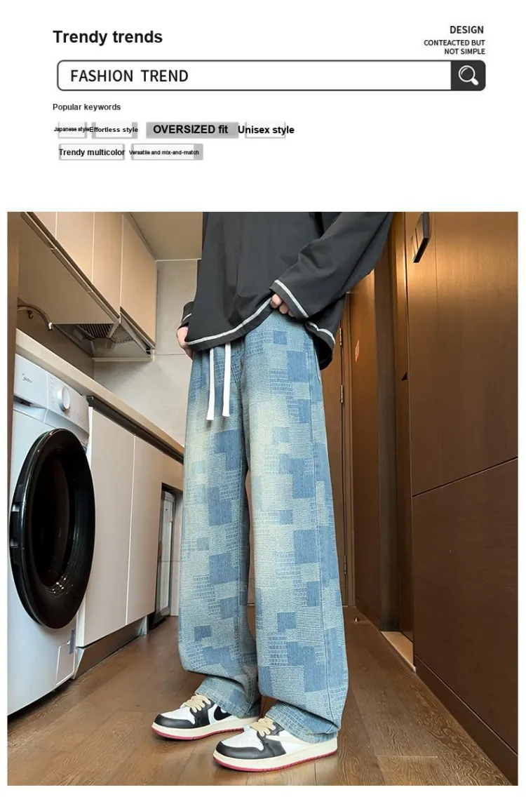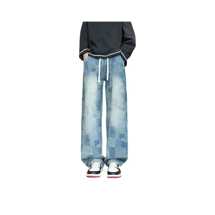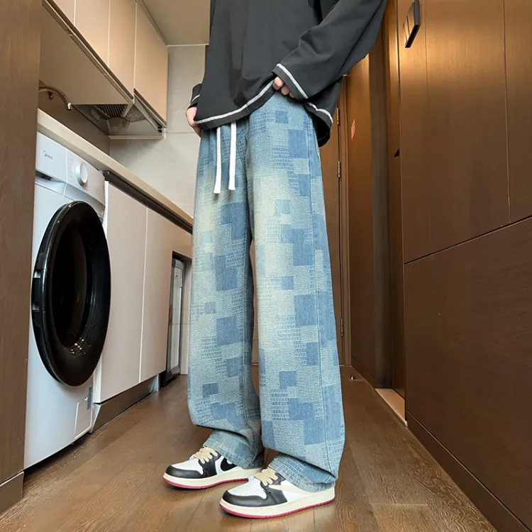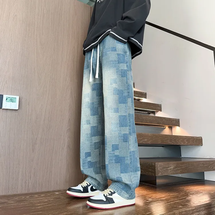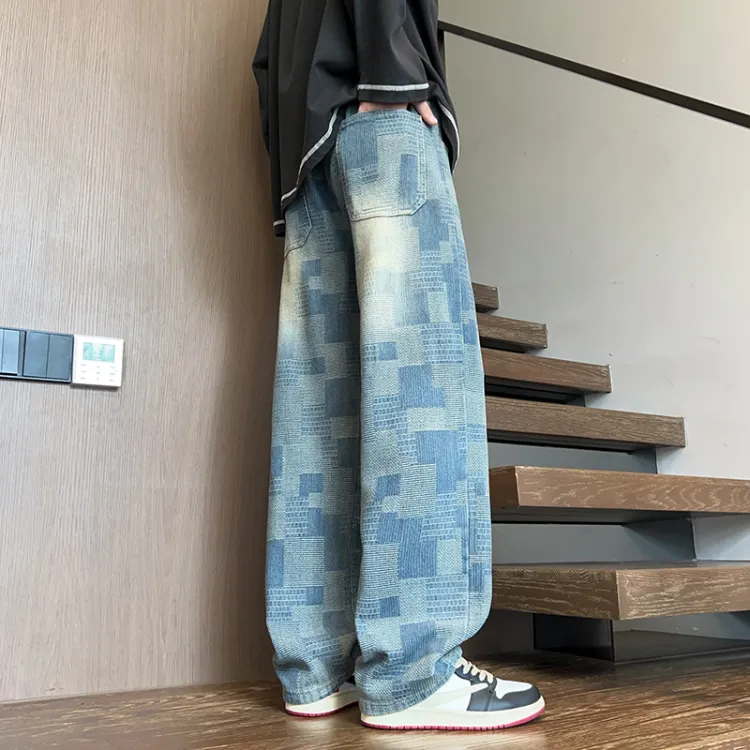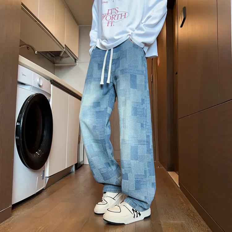 DARK HORSE Washed Plaid Jeans Unisex