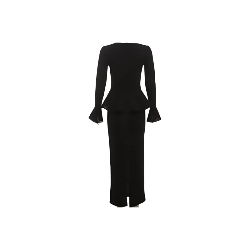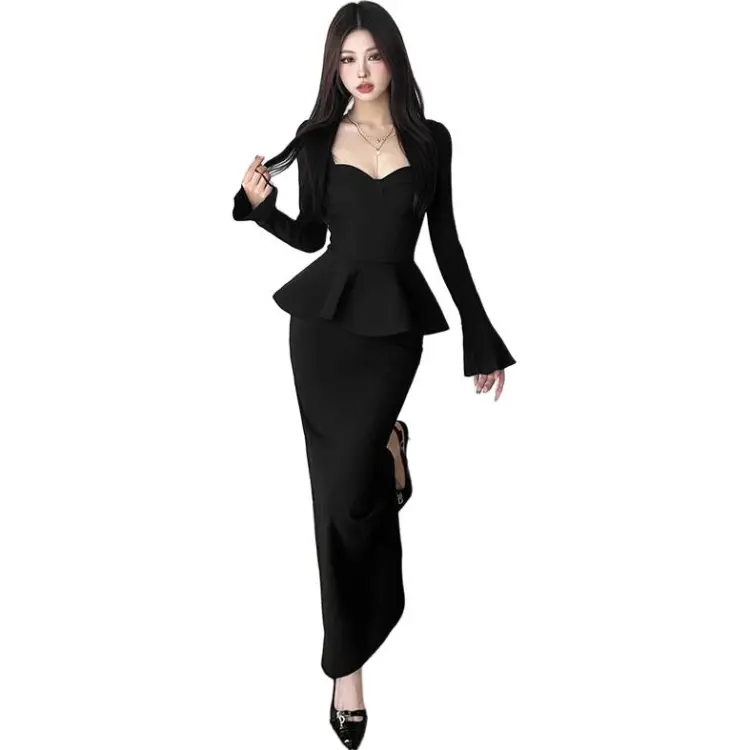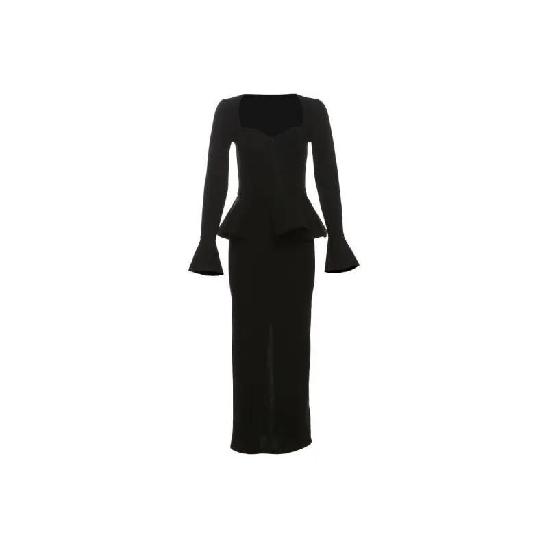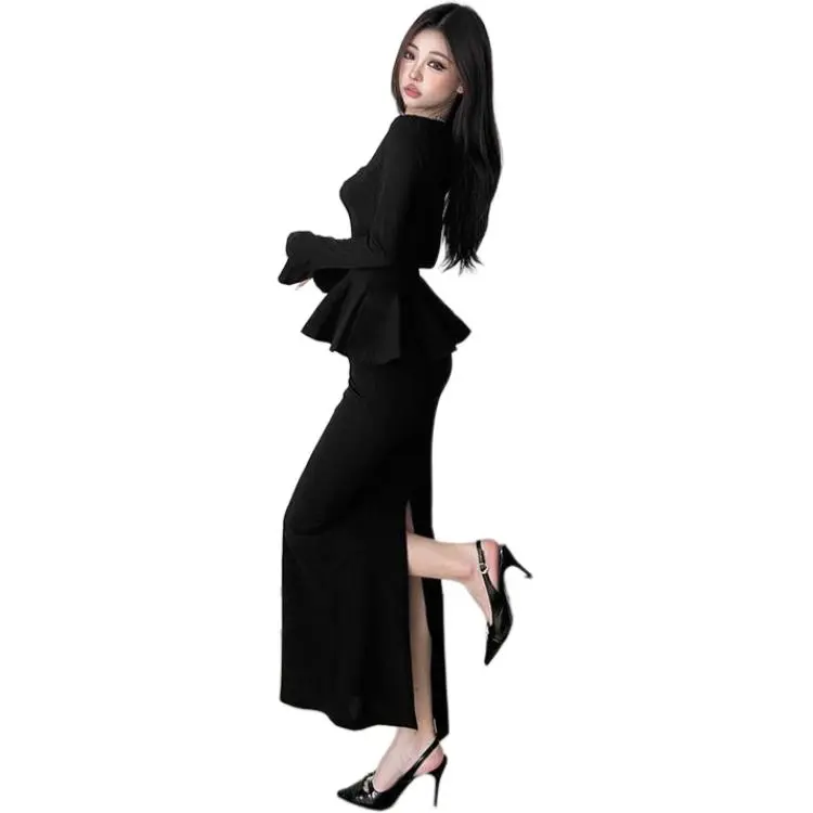 DATOUXIAYUBUCHOU Длинное платье с длинными рукавами женское черное
