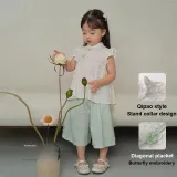 Топ: 100% регенерированное целлюлозное волокно Штаны: 51% вискоза, 49% хлопок (исключая отделочные элементы)