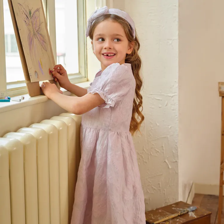 DAVE&BELLA From the Eastern Series Фиолетовый Туманно-розовый Марля Детские Платья