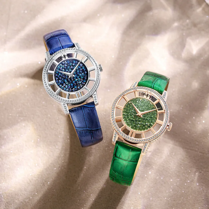 DAVENA Shining Adventure Collection Кварцевый механизм кожаный ремешок из коровы женские часы синий циферблат