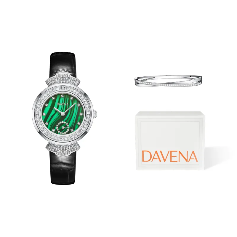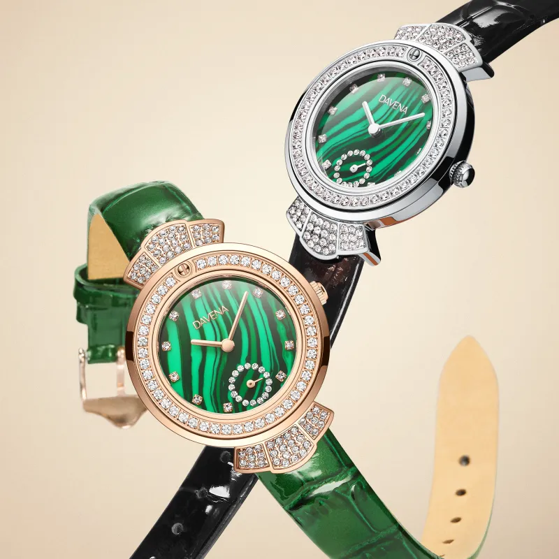 DAVENA Possession Collection Small Green Watch Malachite Green Маленький Круглый Baby's Breath Watch Кварцевый механизм