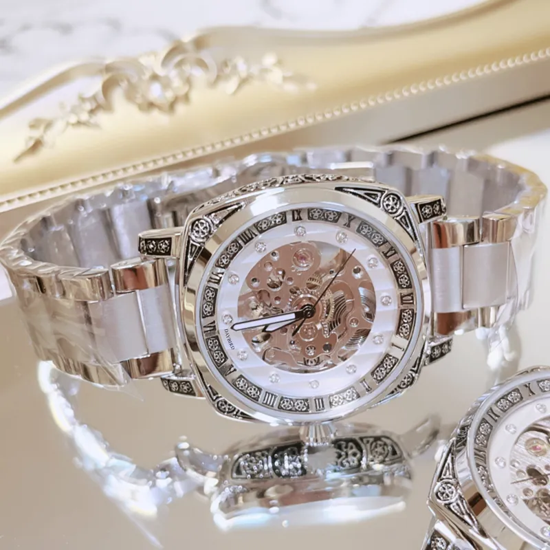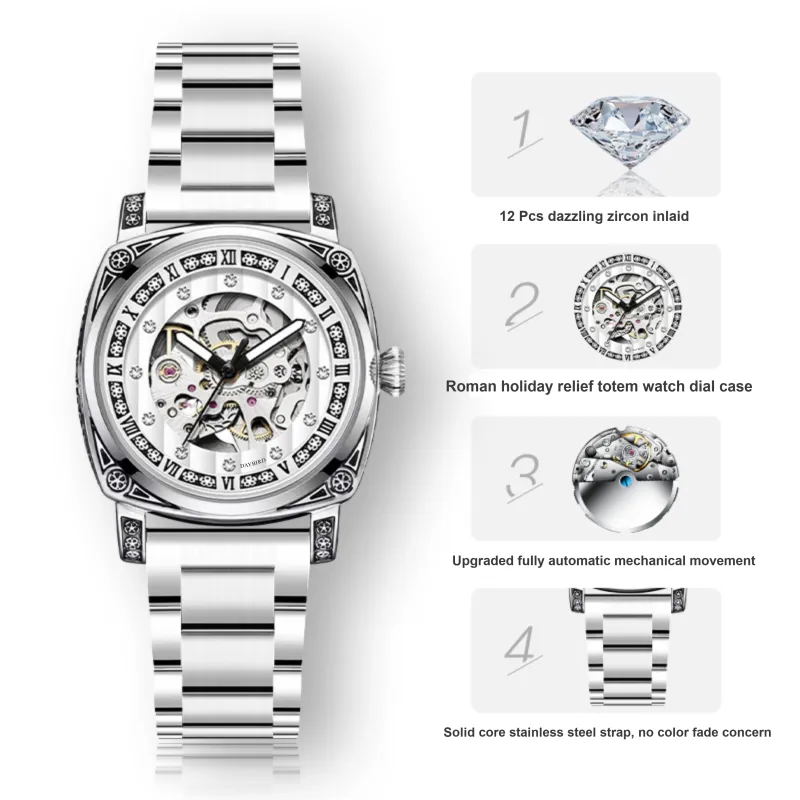 DAYBIRD Автоматический Механический Механизм Нержавеющая Сталь Ремешок Часы Мужские Белый Циферблат