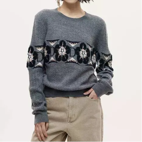 Темно-серая пряжа: 48,6% полиэстер, 21,2% акрил, 21,2% полиамид, 6% овечья шерсть, 3% овечья пряжа