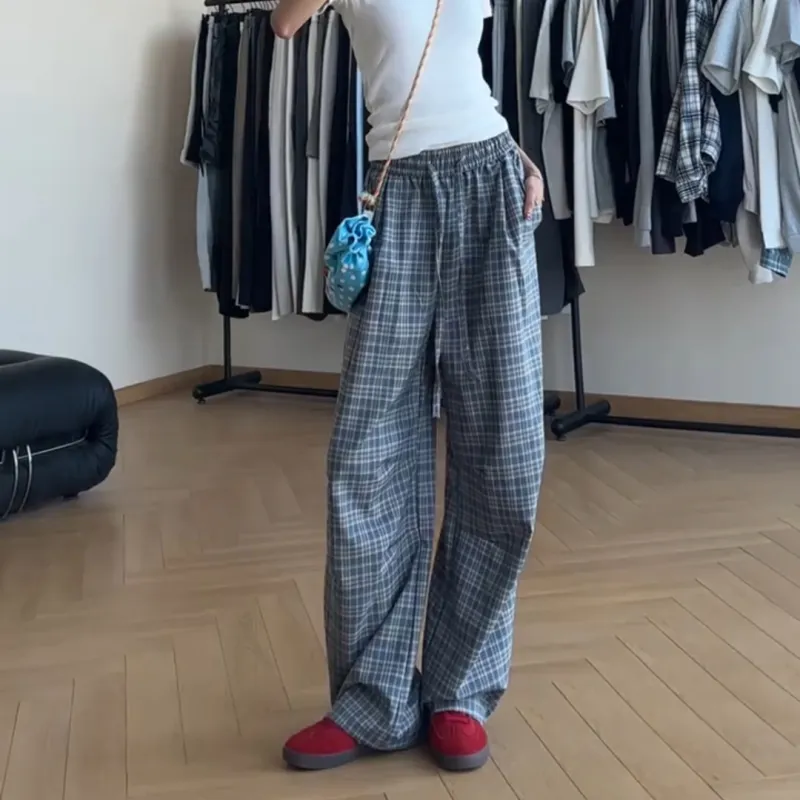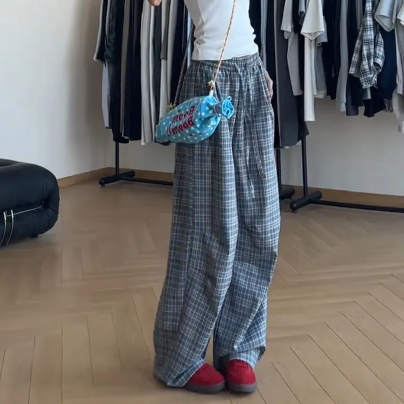 DEAR BETSY Blue Plaid Unisex Casual Pants DEAR BETSY Синий Клетка Унисекс Повседневные Штаны