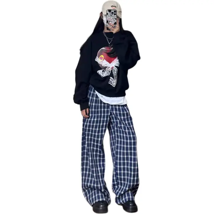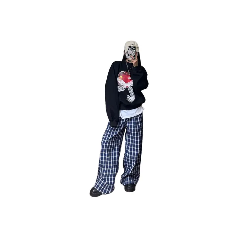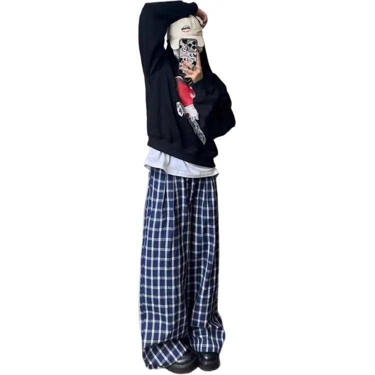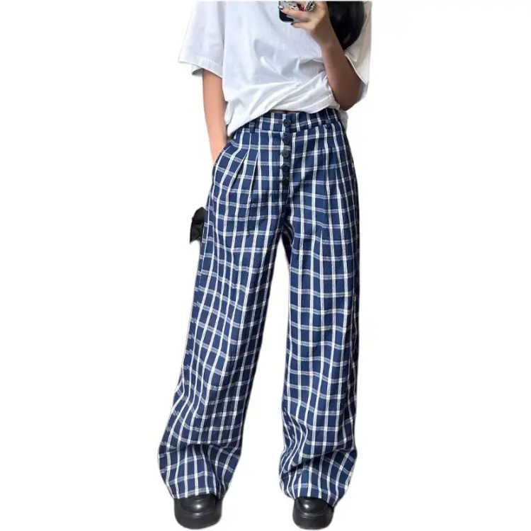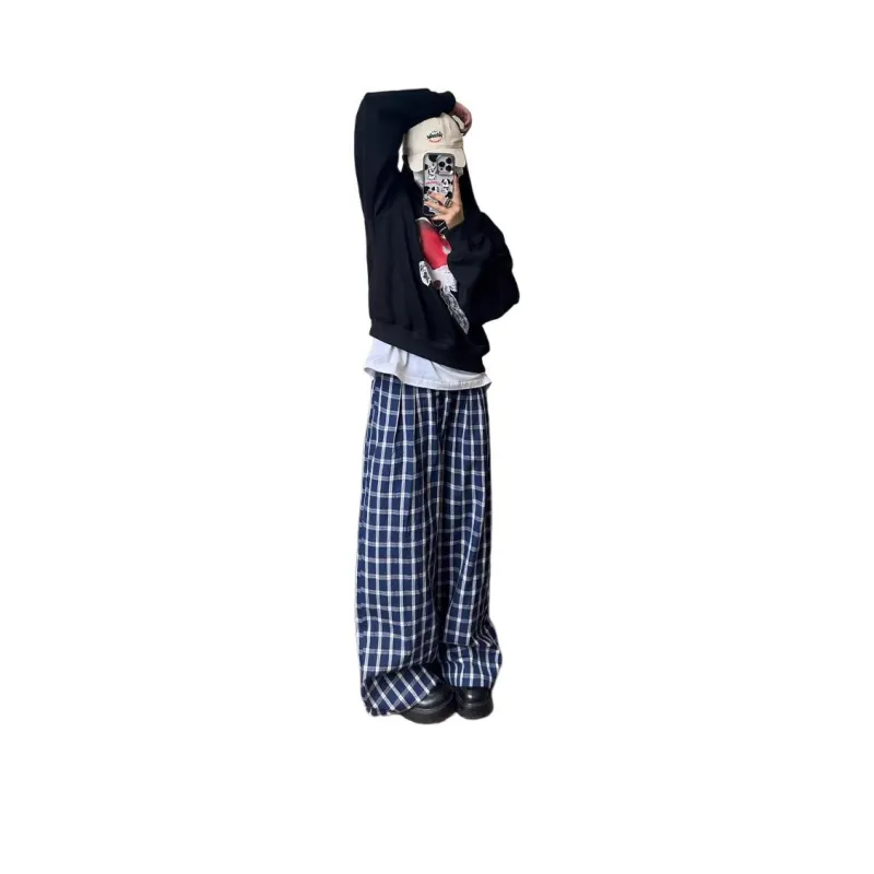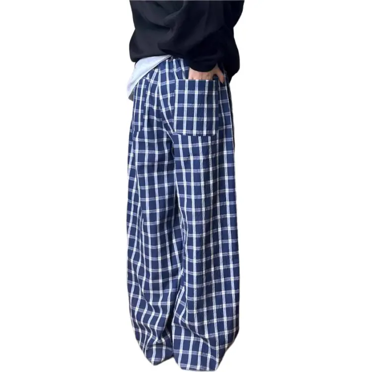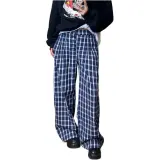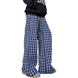 DEAR BETSY Blue Plaid Unisex Casual Pants DEAR BETSY Синий Клетка Унисекс Повседневные Штаны