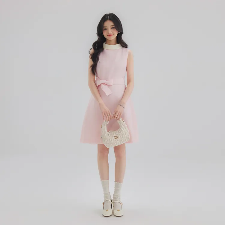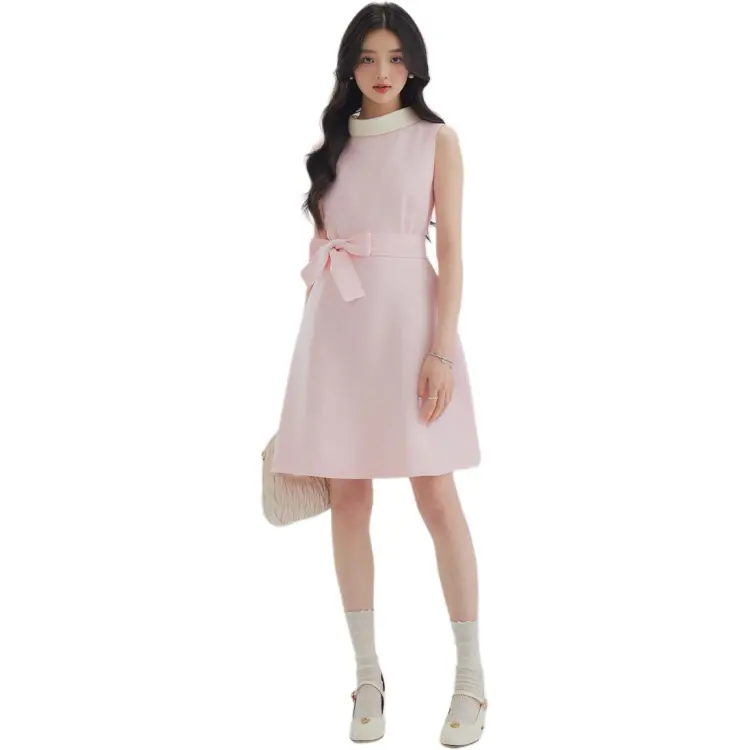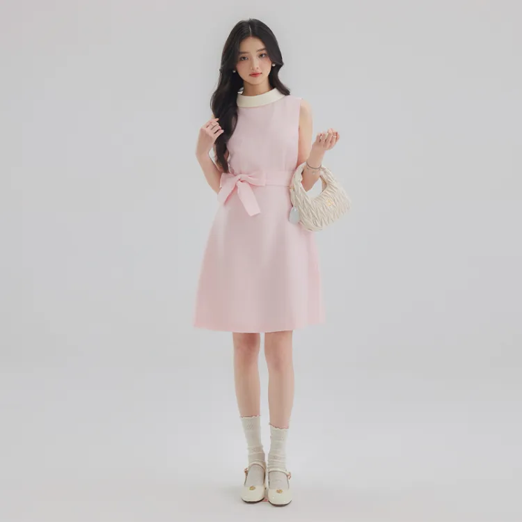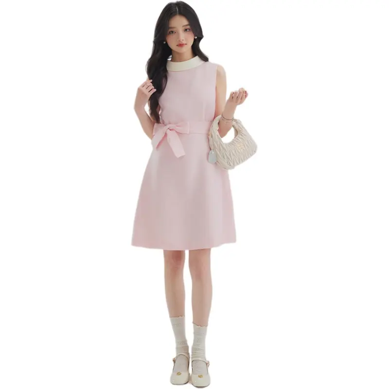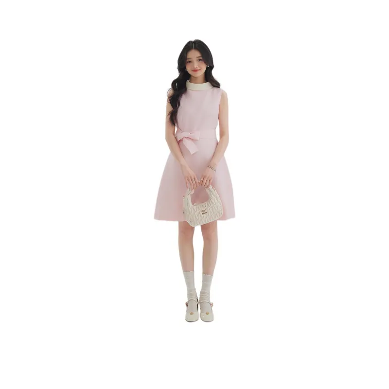 DEAR DEER PUFF 25SS Без рукавов Платье Женское Черное Розовое Желтое Белое