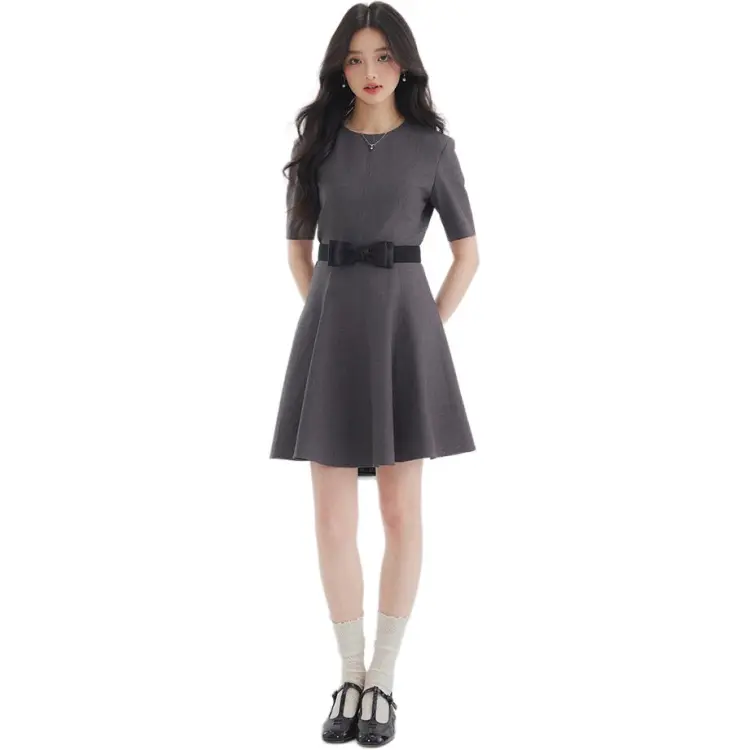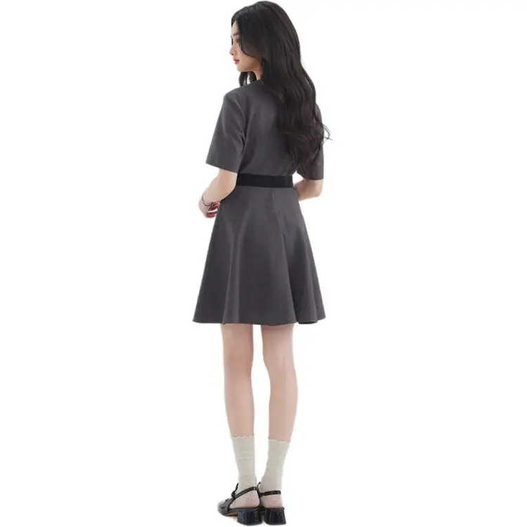 DEAR DEER PUFF Короткий рукав Платье Женское Темно-сланцево-серый