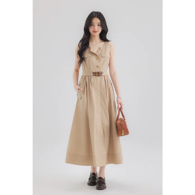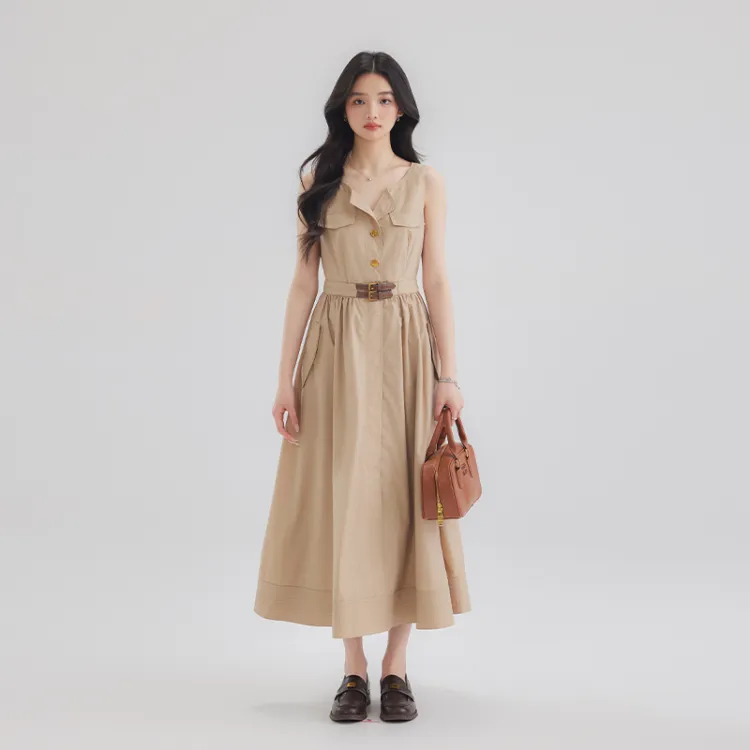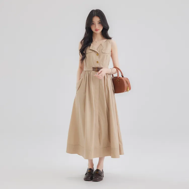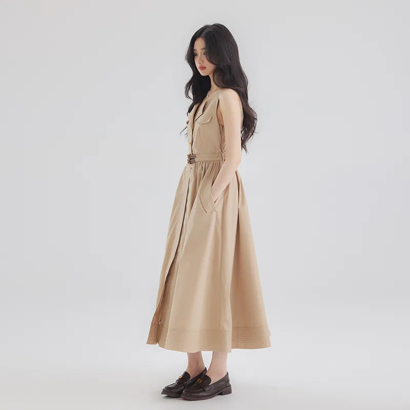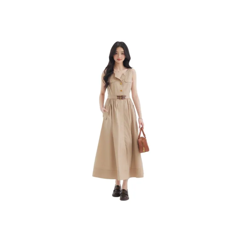 DEAR DEER PUFF Без рукавов Платье Женское Хаки