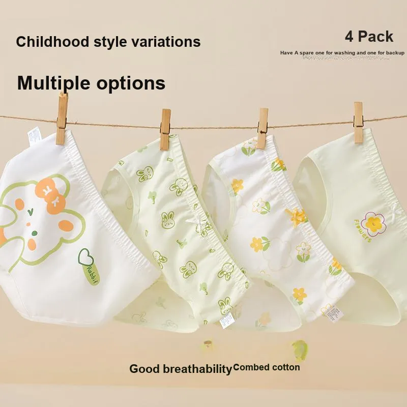 Deesha 4 шт [Светло-зеленый + Экрю + Экрю + Светло-зеленый] Kids Трусы