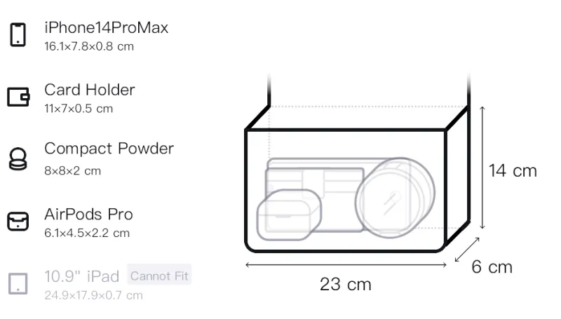 Длина (размер в длину): 23 см, Ширина корпуса: 6 см, Длина корпуса: 14 см
