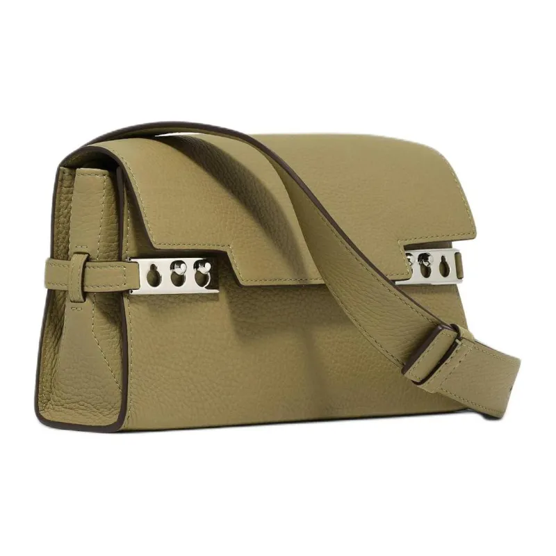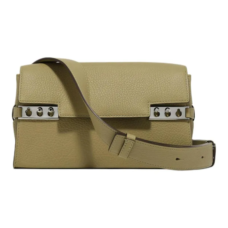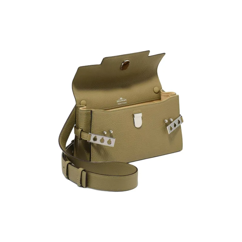 Delvau Tempête Sequoia Рифленая Телячья Кожа Плечевая Сумка Унисекс Оливково-Зеленый